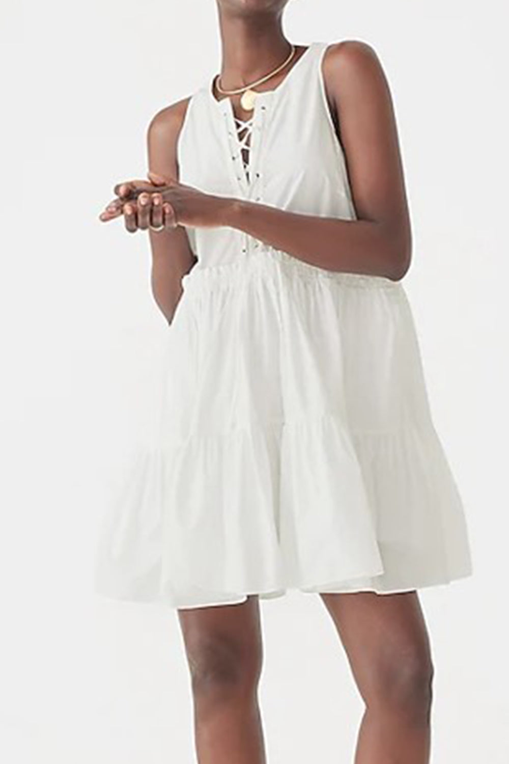 Type-Pylaia White Dress Color-White Neck type-Round Neck Sleeve Length-Sleeveless Fit-Relaxed Fabric-Poplin