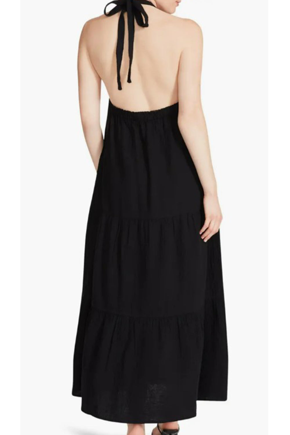 Type-Pyrgos Black Dress Color-Black Neck type-Close neckline Sleeve Length-Sleeveless Fit-Relaxed Fabric-Rayon