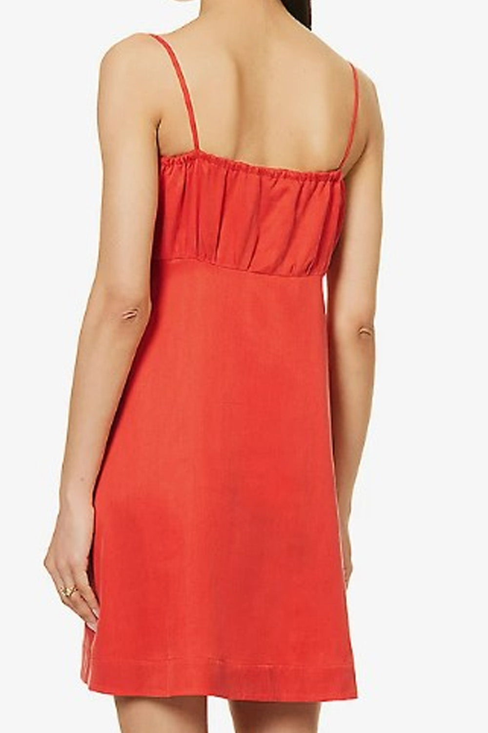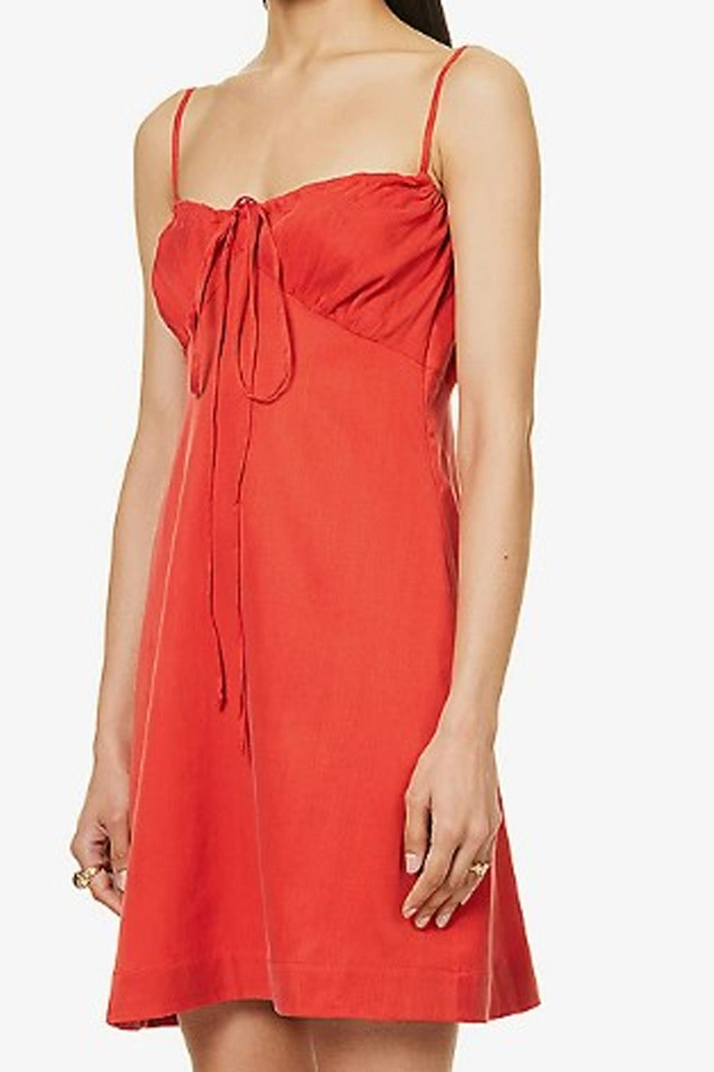 Type-Quixotic Orange Dress, Color-Orange, Neck type-Sweetheart neck, Sleeve Length-Sleeveless, Fit-Regular, Fabric-Satin