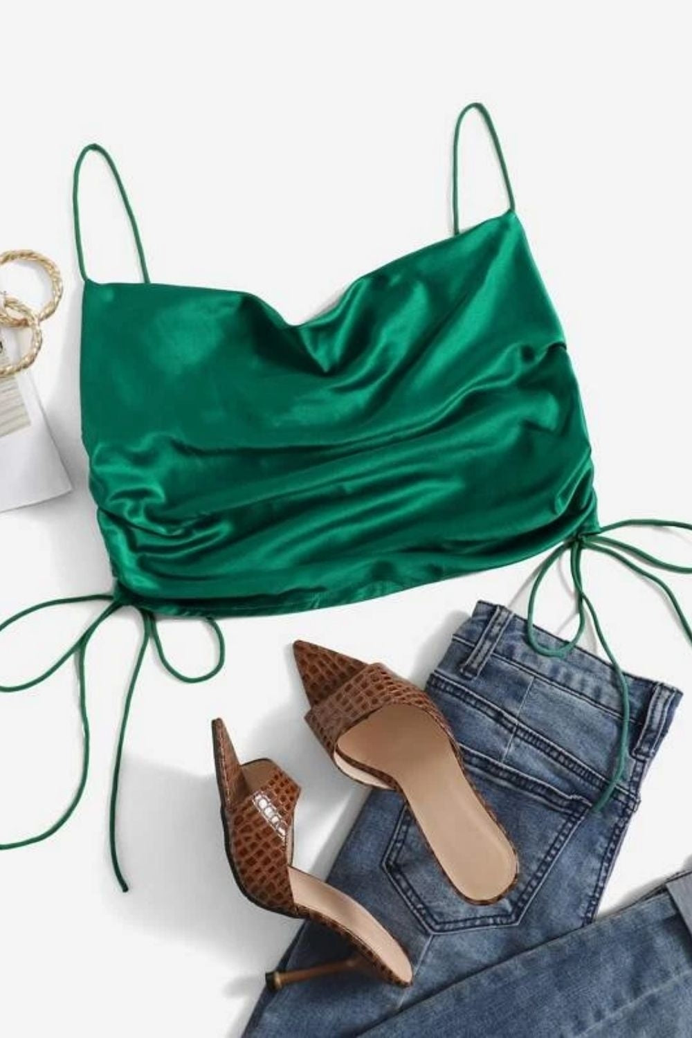 Made from high-quality Satin, the fabric drapes beautifully, giving the top a luxurious sheen that catches the light just right. The Forest Green color adds a touch of nature-inspired elegance, making it perfect for daytime outings or evening events.