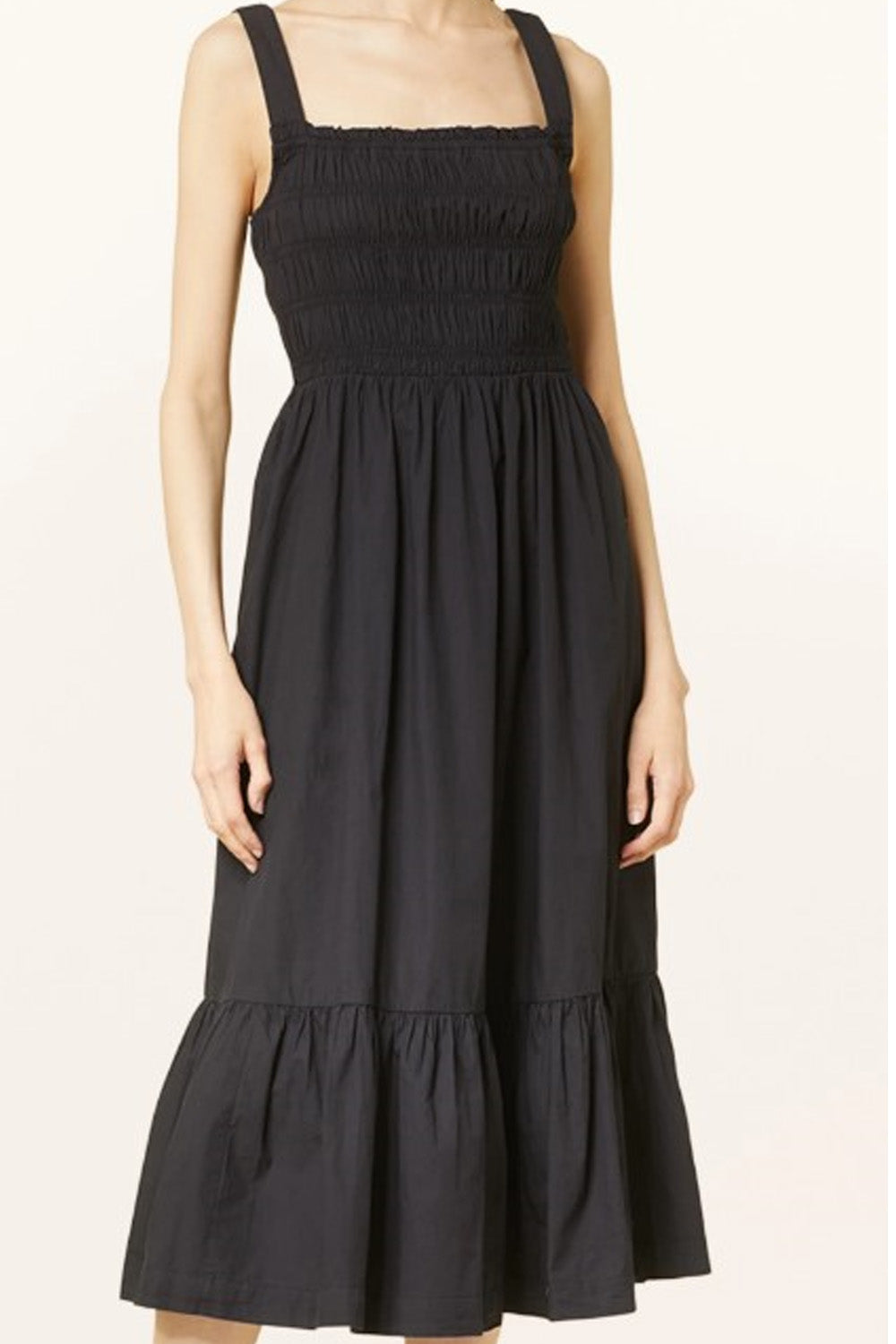 Type-Realm Black Dress, Color-Black, Neck type-Square neck, Sleeve Length-Sleeveless, Fit-Regular, Fabric-Poplin