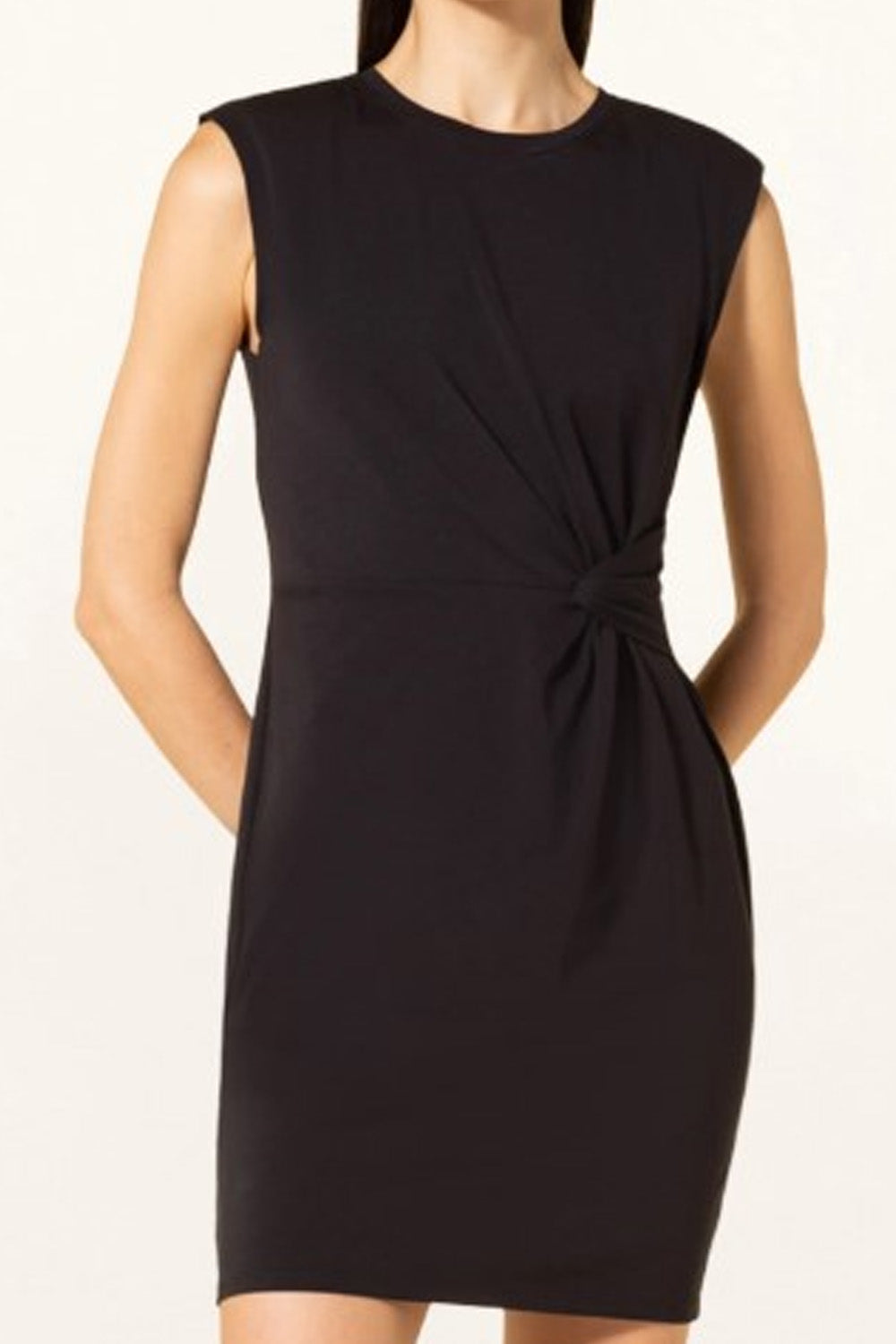 Type-Refuge Black Dress, Color-Black, Neck type-crew neck, Sleeve Length-Sleeveless, Fit-Body Fit, Fabric-Poly Lycra