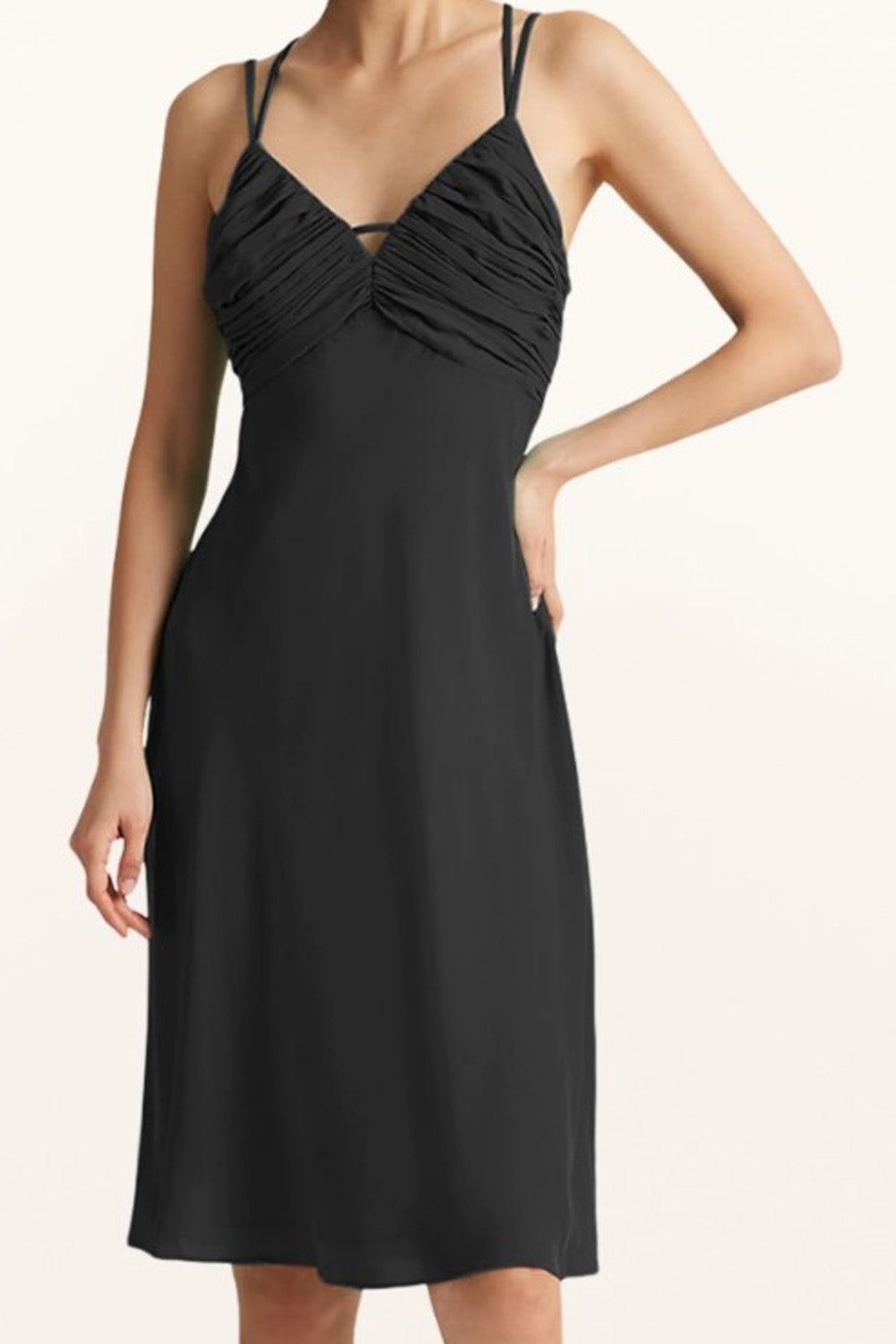 Type-Reserve Black Dress, Color-Black, Neck type-Sweetheart neck, Sleeve Length-Sleeveless, Fit-Body Fit, Fabric-Rayon