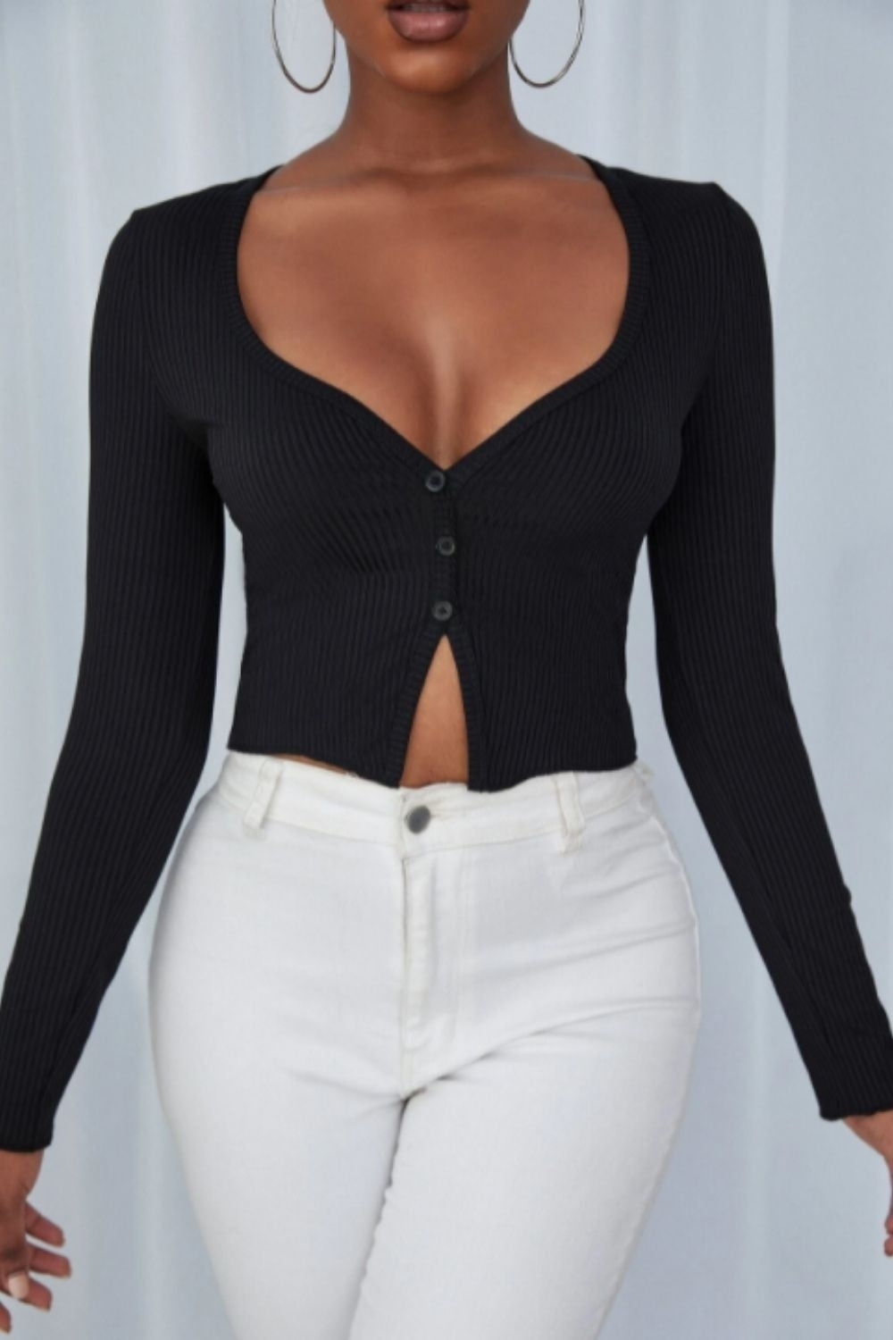 SKU:RibbedKnitButtonFrontCropTop-XS
