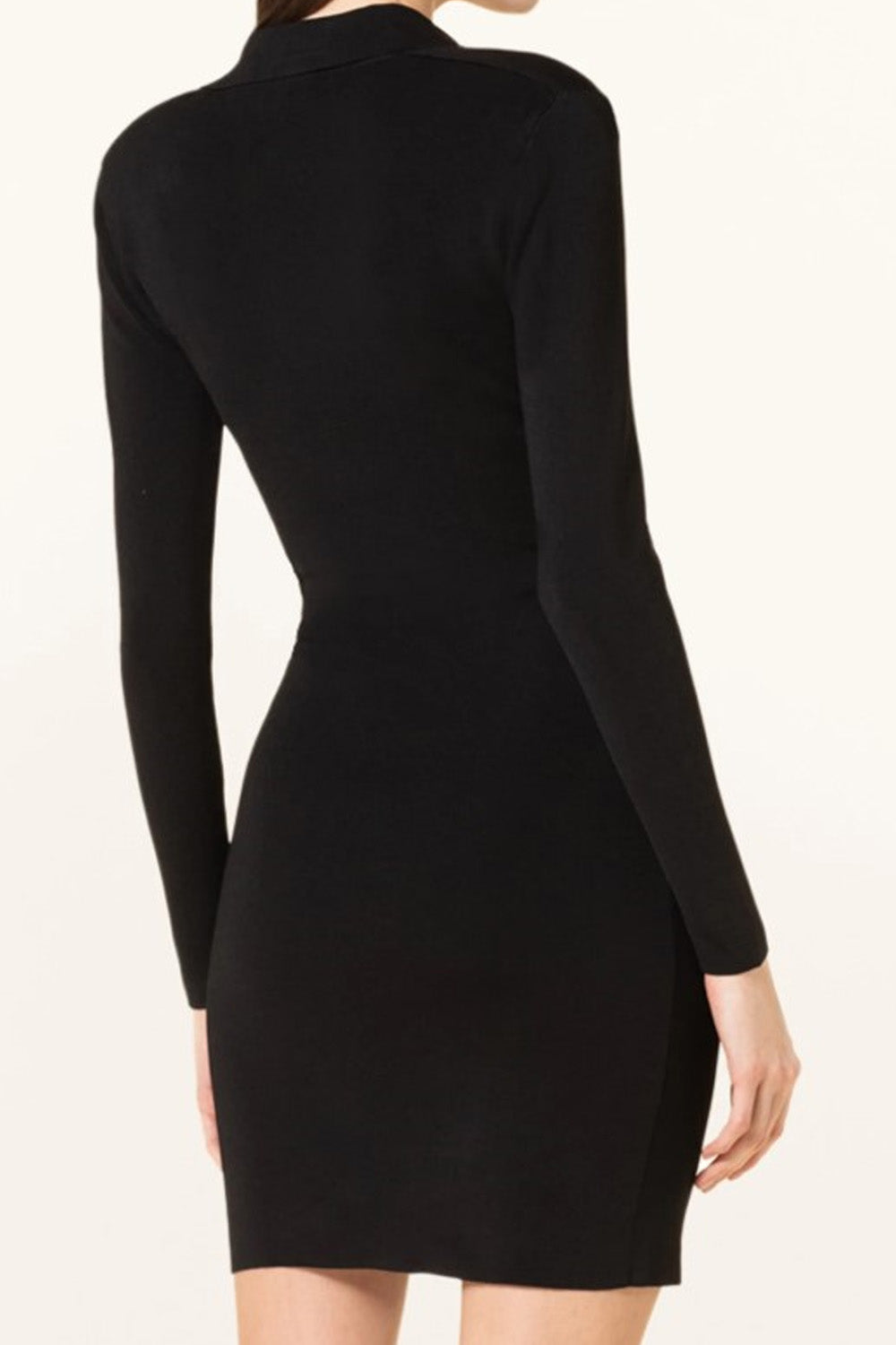 Type-Riches Black Dress, Color-Black, Neck type-Notch collar neck, Sleeve Length-full length, Fit-Body Fit, Fabric-Poly Lycra