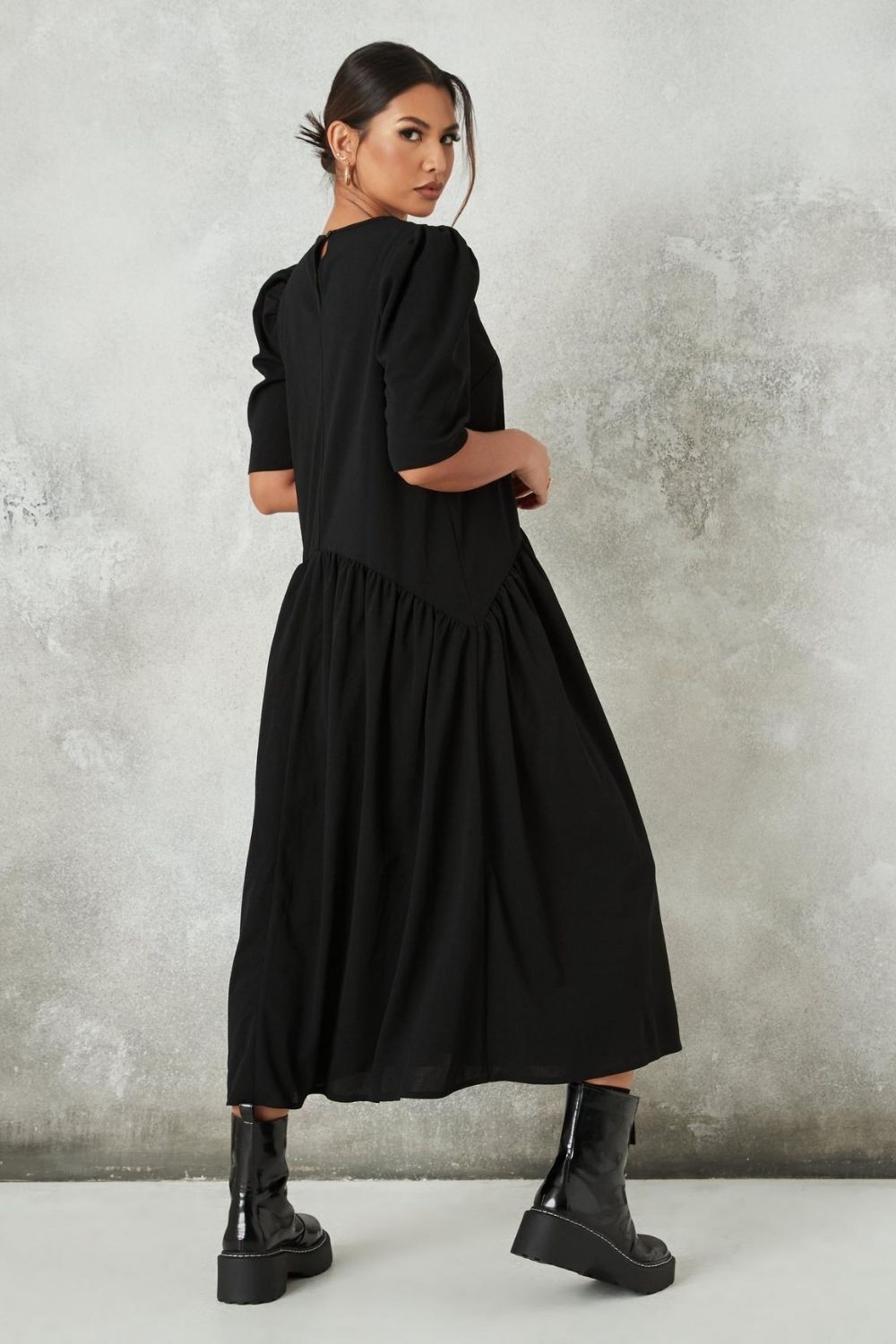 Round Neck Black Oversized Dress