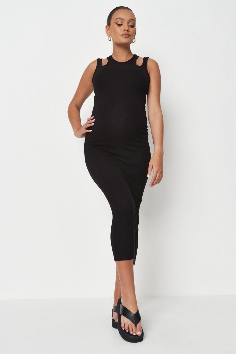Type- Round Neck Cut Out Detail At Shoulders Midi Dress