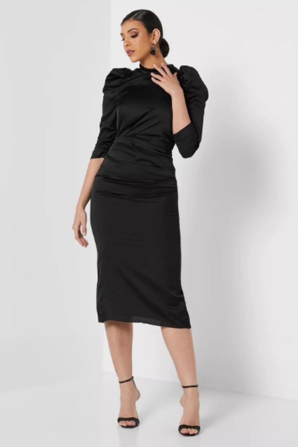 Footwear Magic: Opt for strappy sandals or heels in a neutral tone to elongate your legs and maintain a polished appearance. Nude or metallic shoes work particularly well with the black dress, allowing you to dance the night away in style.