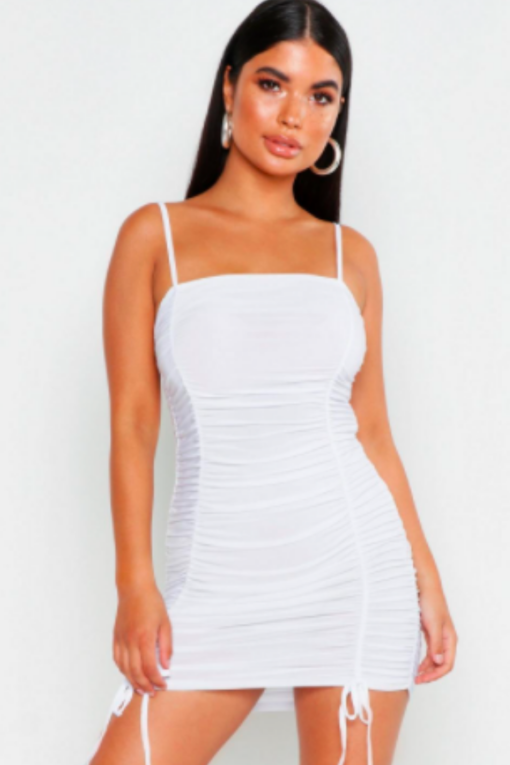 SKU:RuchedMiniWhiteDress-XS