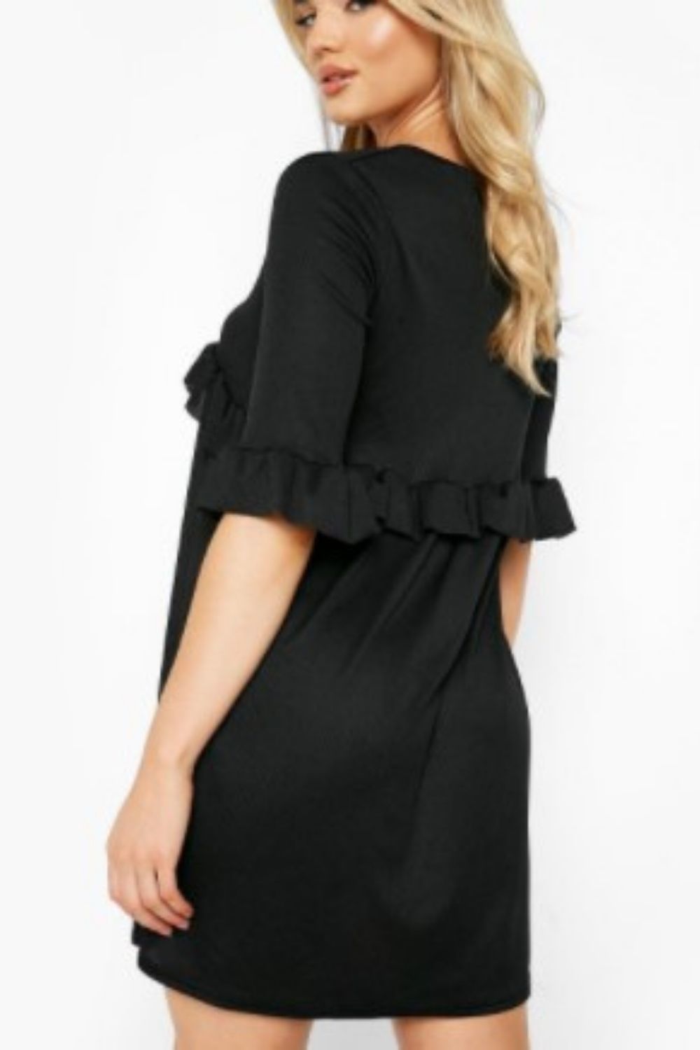 SKU:RuffelDeepUNeckRelaxedDress-XS