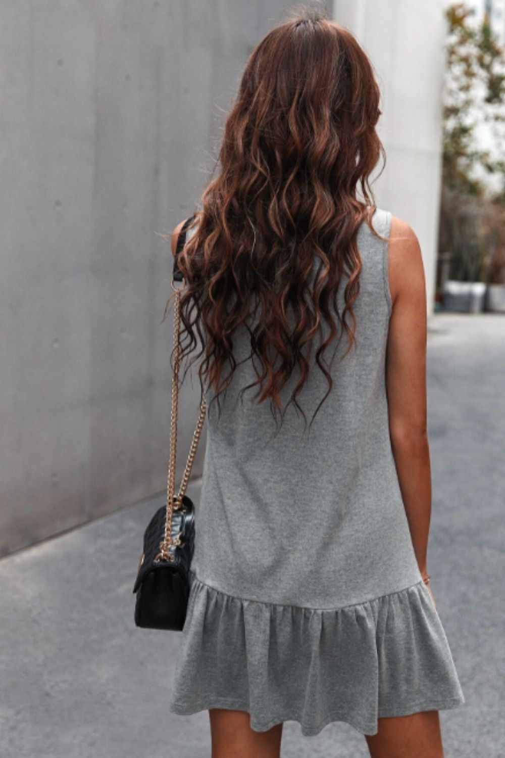 SKU:RuffleHemButtonDownVNeckSummerDress-XS