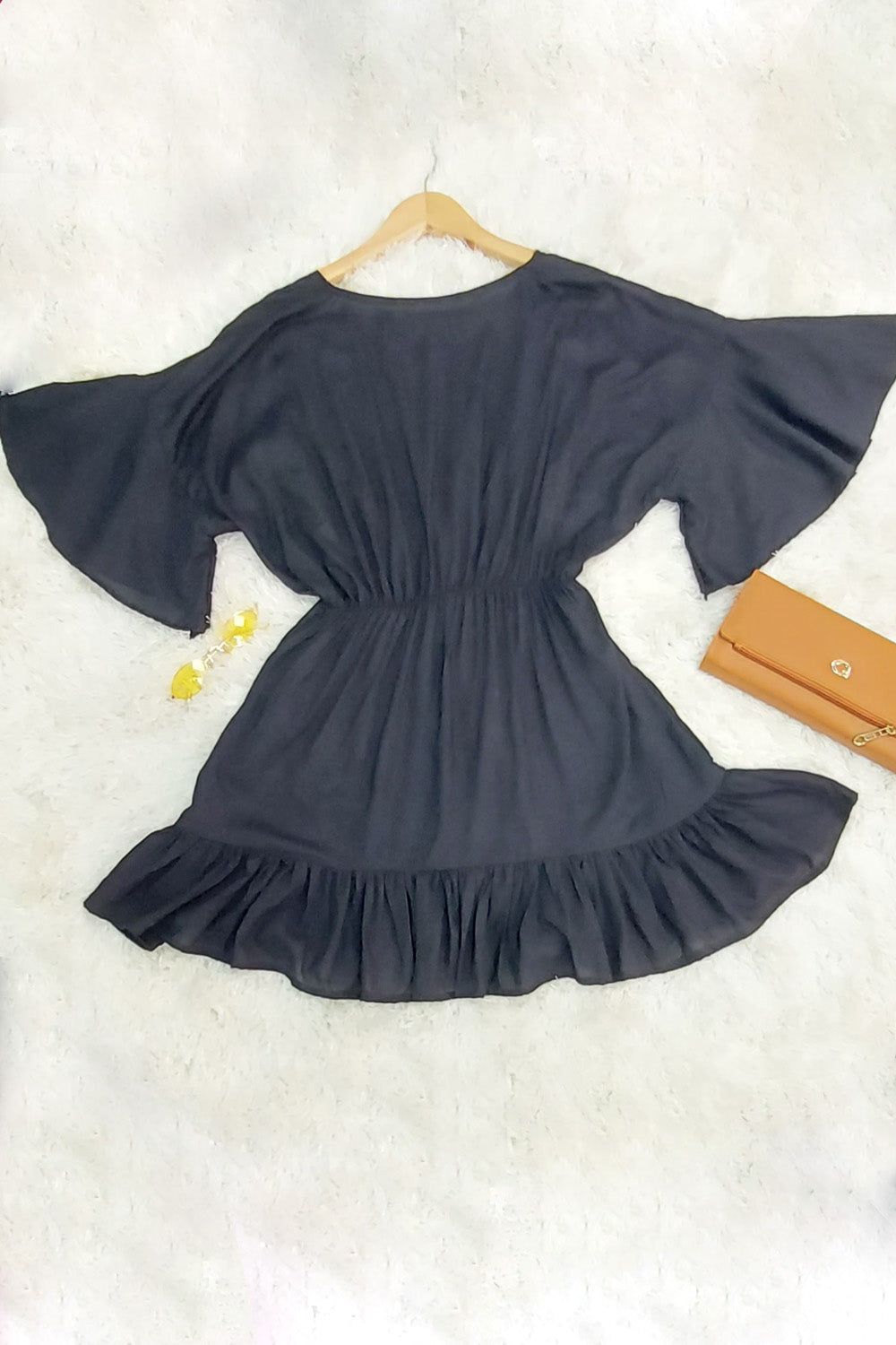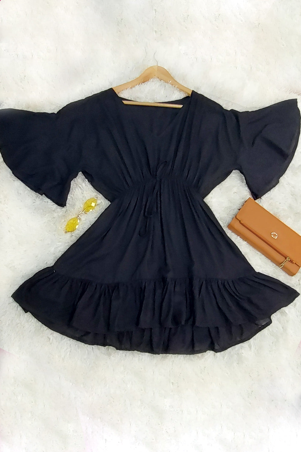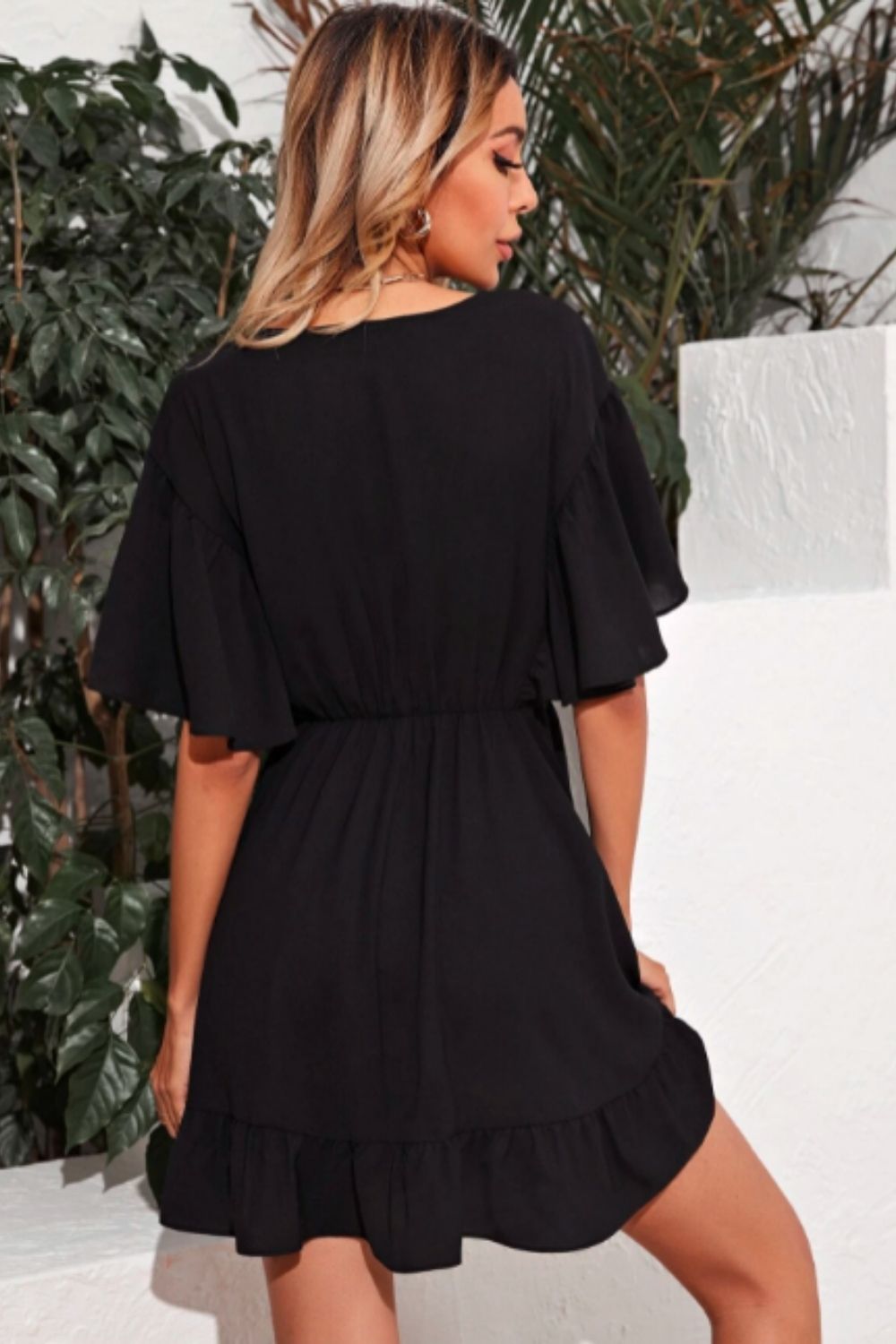 - Type: Ruffle Hem V-neck Fit And Flare Mini Dress