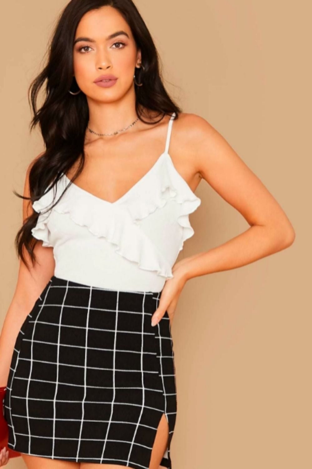The star of the show is undoubtedly the delightful ruffle trim, strategically placed to add a playful and feminine touch. Whether you're heading to a brunch with friends, a beach party, or a romantic evening out, this bodysuit effortlessly transitions from day to night with its versatile and stylish design.