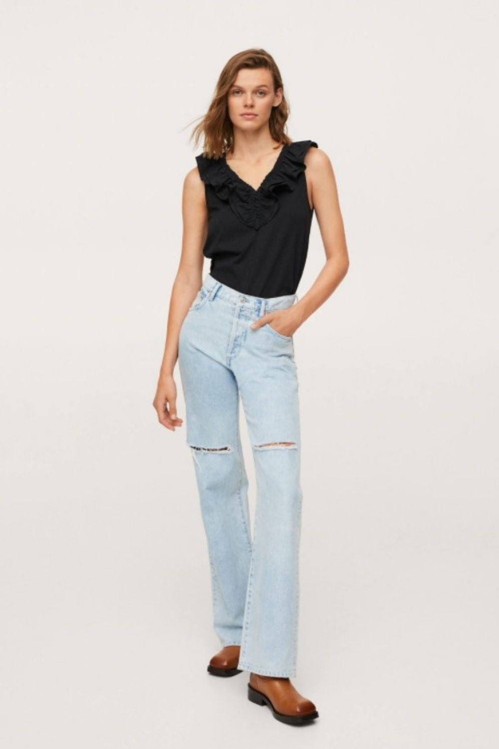 Accessorize Smartly: Opt for minimalist accessories such as dainty necklaces or stackable bracelets to let the ruffled neckline stand out. A sleek wristwatch and oversized sunglasses can add a touch of glamour to your look.