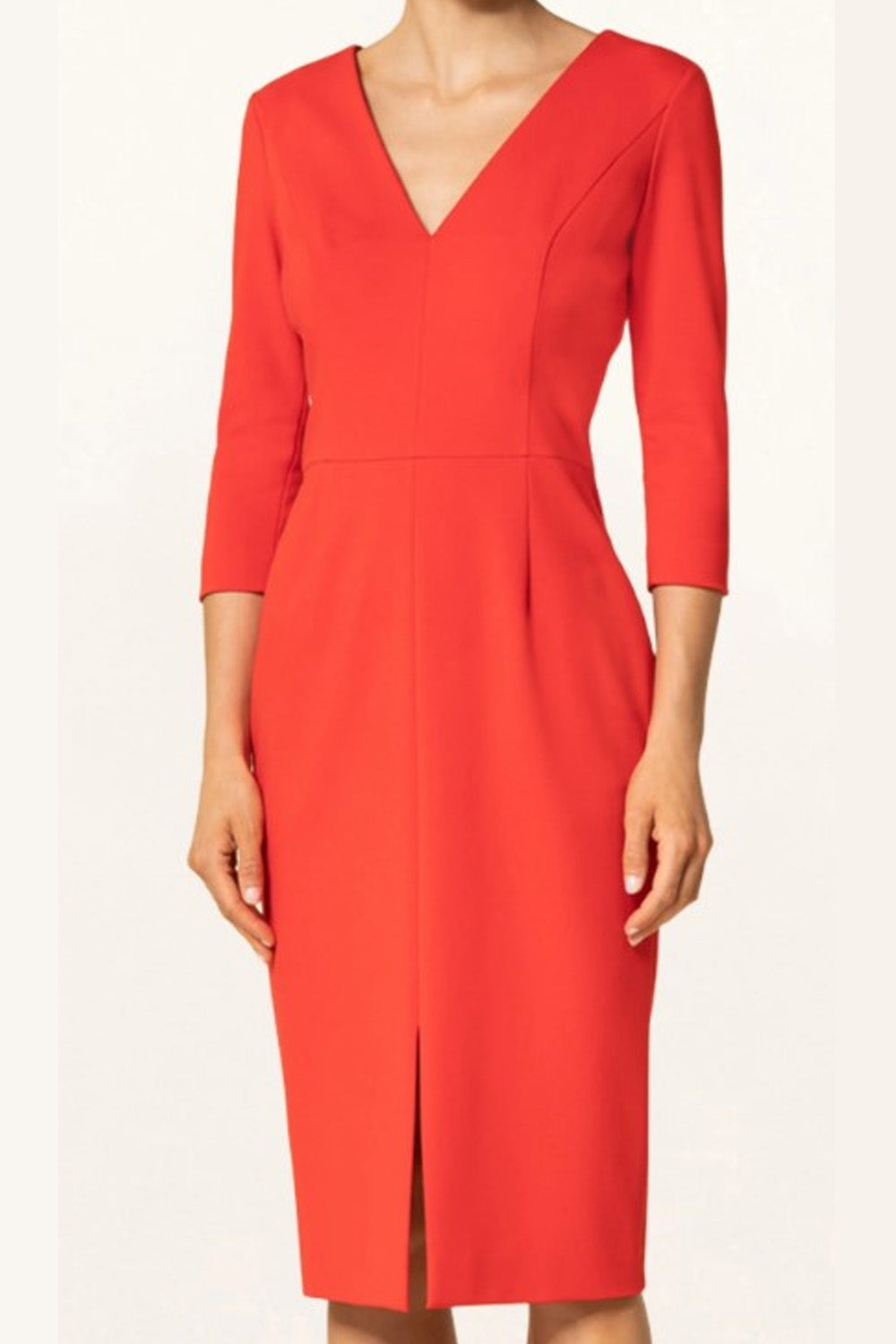 Type-Sanctuary red Dress, Color-red, Neck type-V Neckline, Sleeve Length-Below elbow length, Fit-Body Fit, Fabric-Poly Lycra