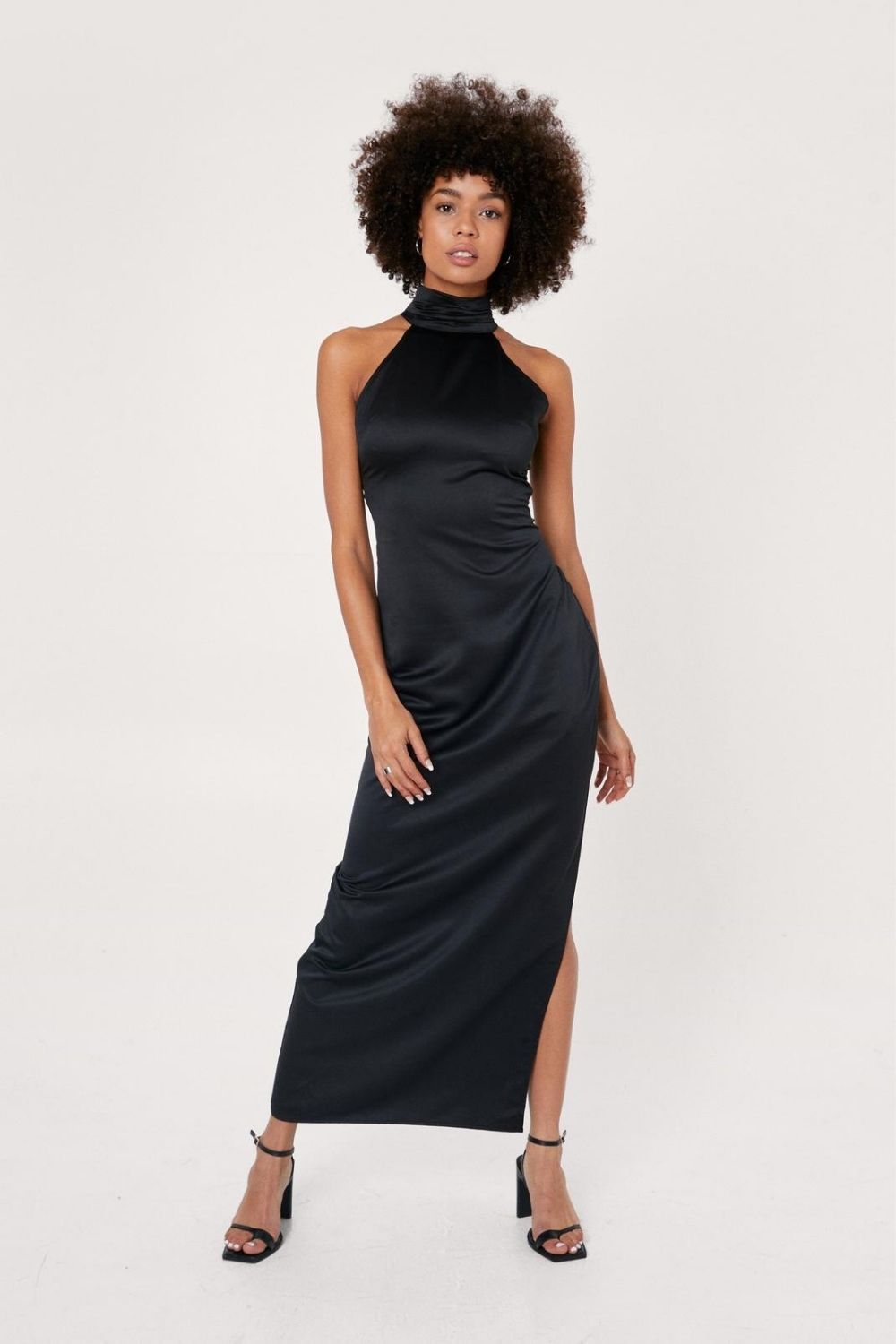 SKU:SatinHalterneckColumnMaxiDress-XS