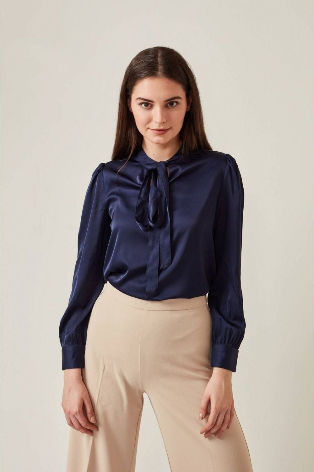 SKU:SatinNavyBlueFullSleeveTop-XS