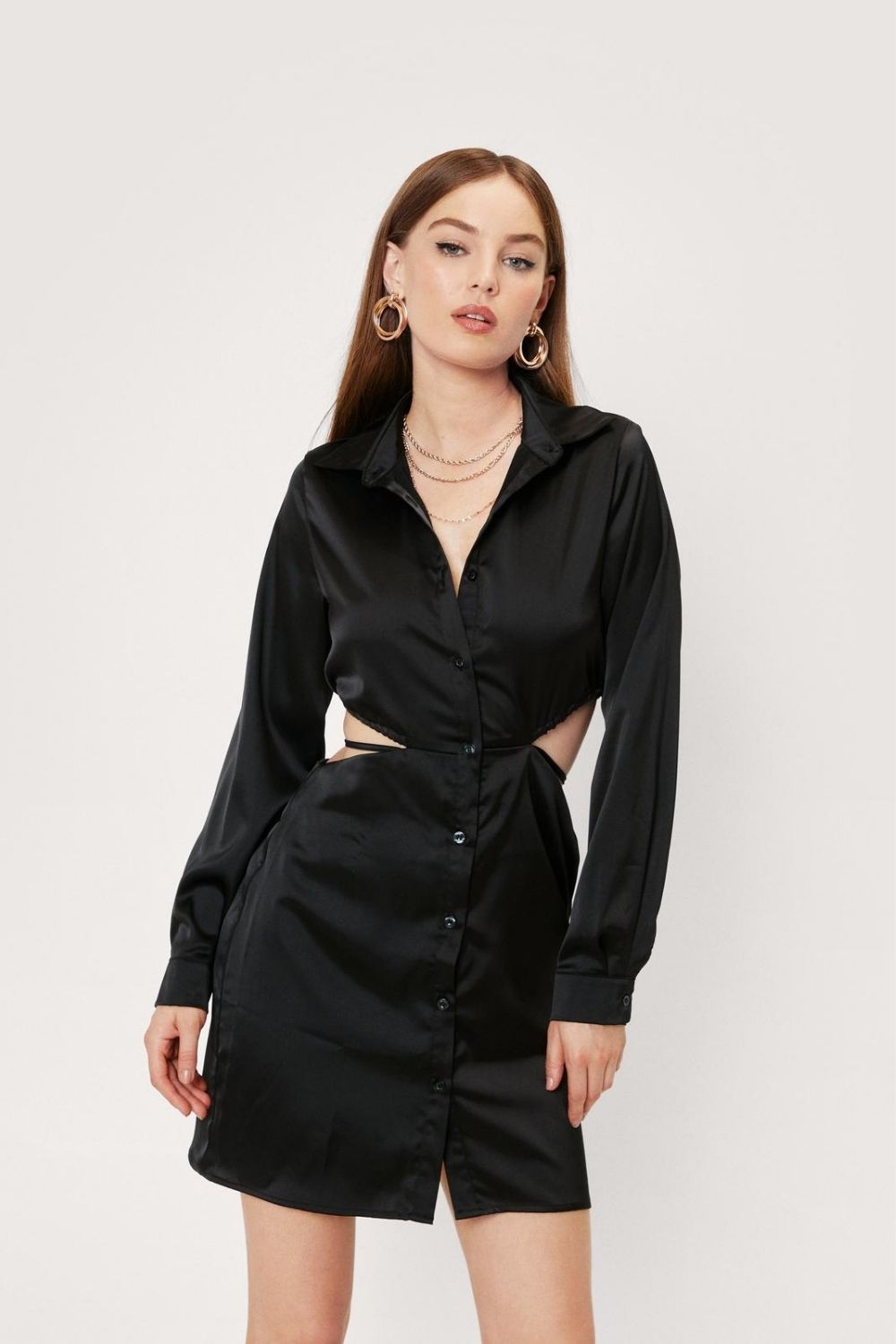 Introducing our Satin Strappy Waist Shirt Dress – a versatile and chic addition to your summer wardrobe. This dress effortlessly combines comfort and style, making it the perfect choice for various occasions. In classic black satin, it exudes sophistication while offering a relaxed fit that ensures you stay cool and comfortable all season long.
