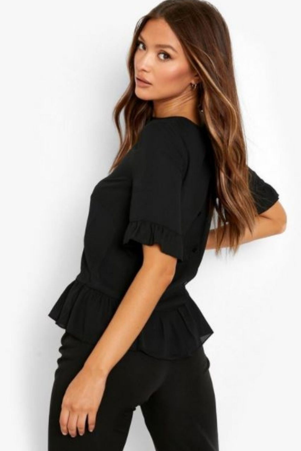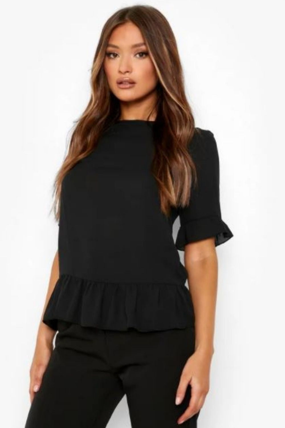 The sleek black hue adds a touch of refinement to any outfit, allowing you to pair it seamlessly with a variety of bottoms and accessories. Dress it up with tailored trousers and heels for a polished office ensemble, or opt for denim shorts and sandals for a laid-back yet stylish vibe.