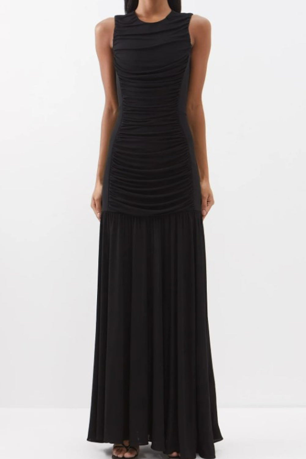 Type-Seogwipo Black Dress, Color-Black, Neck type-Round Neck, Sleeve Length-Sleeveless, Fit-Fit & Flare, Fabric-Poly Lycra