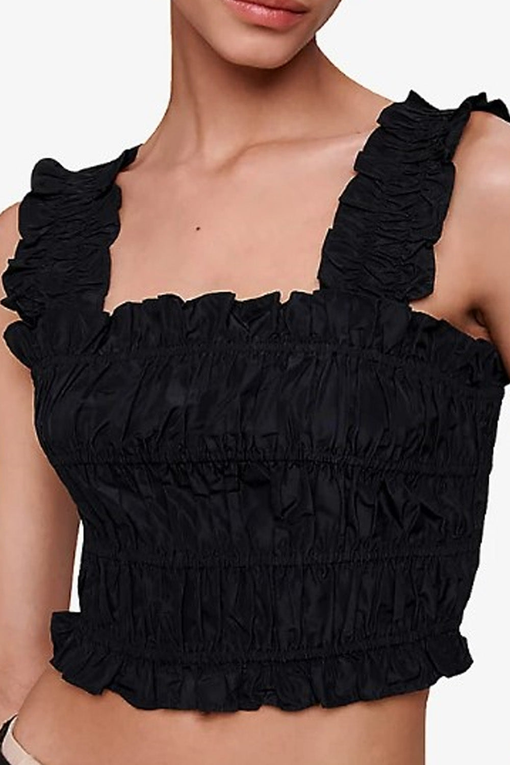 Type-Serendipity Black Top, Color-Black, Neck type-square neck, Sleeve Length-Sleeveless, Fit-Body Fit, Fabric-Poplin
