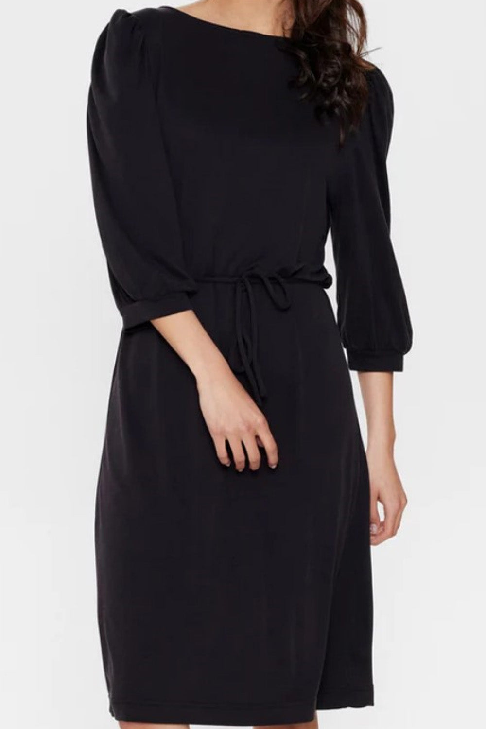 Type-Serenity Black Dress, Color-Black, Neck type-Round neck, Sleeve Length-3/4th sleeve, Fit-Regular, Fabric-Satin