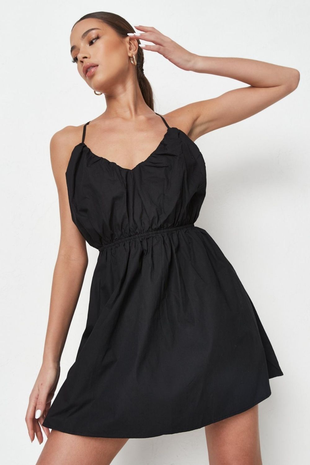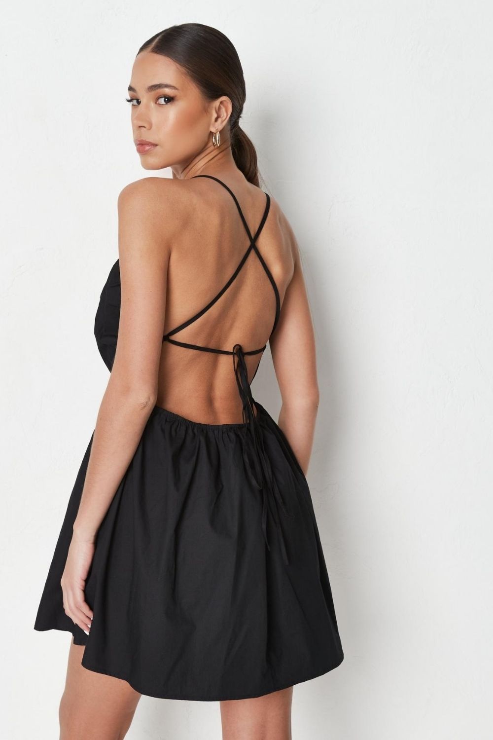 SKU:ShirredwaistBacklessBlackMiniDress-XS
