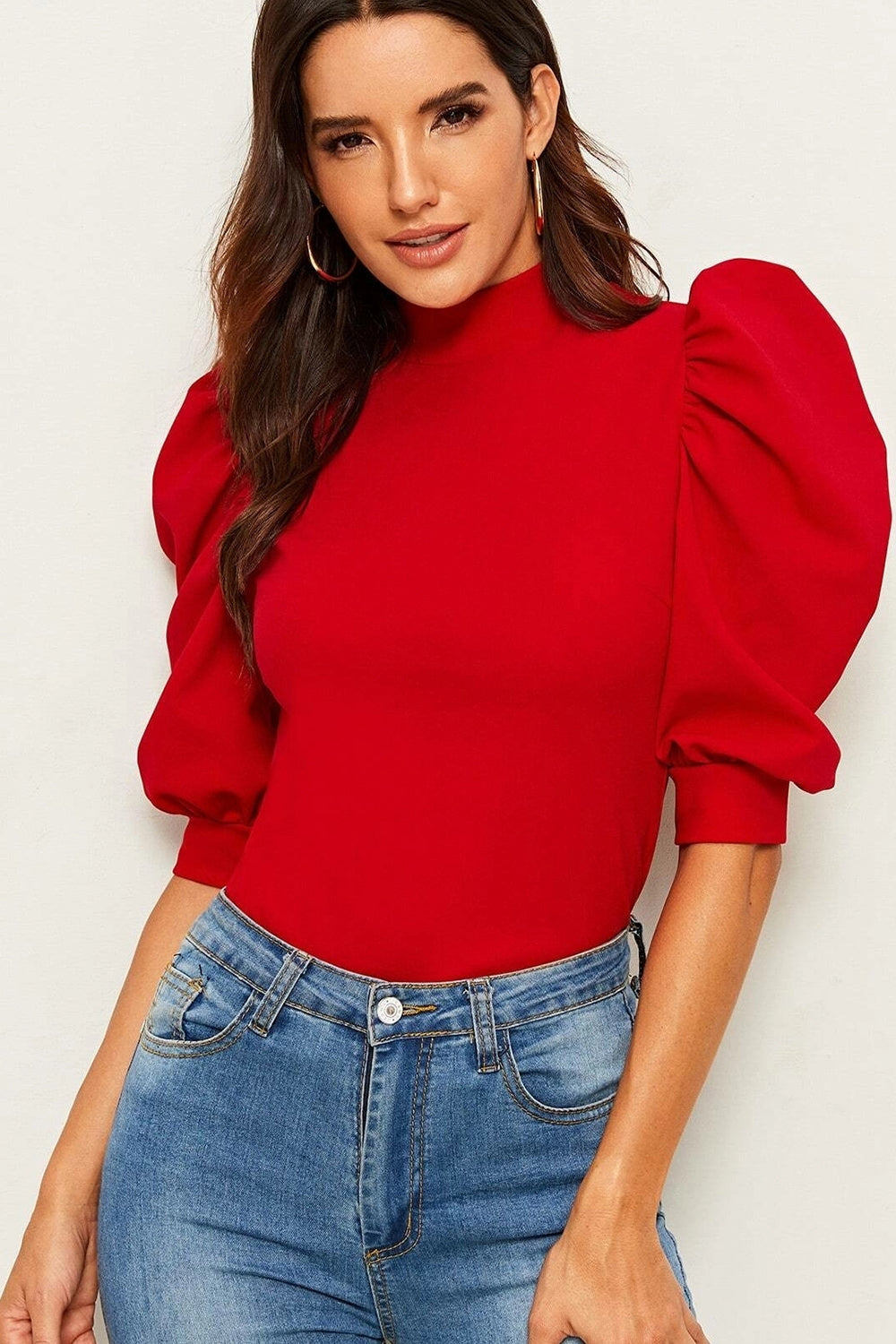 We have another valentine date pick for you. This short sleeve leg off mutton sleeve top is made for special occasions.