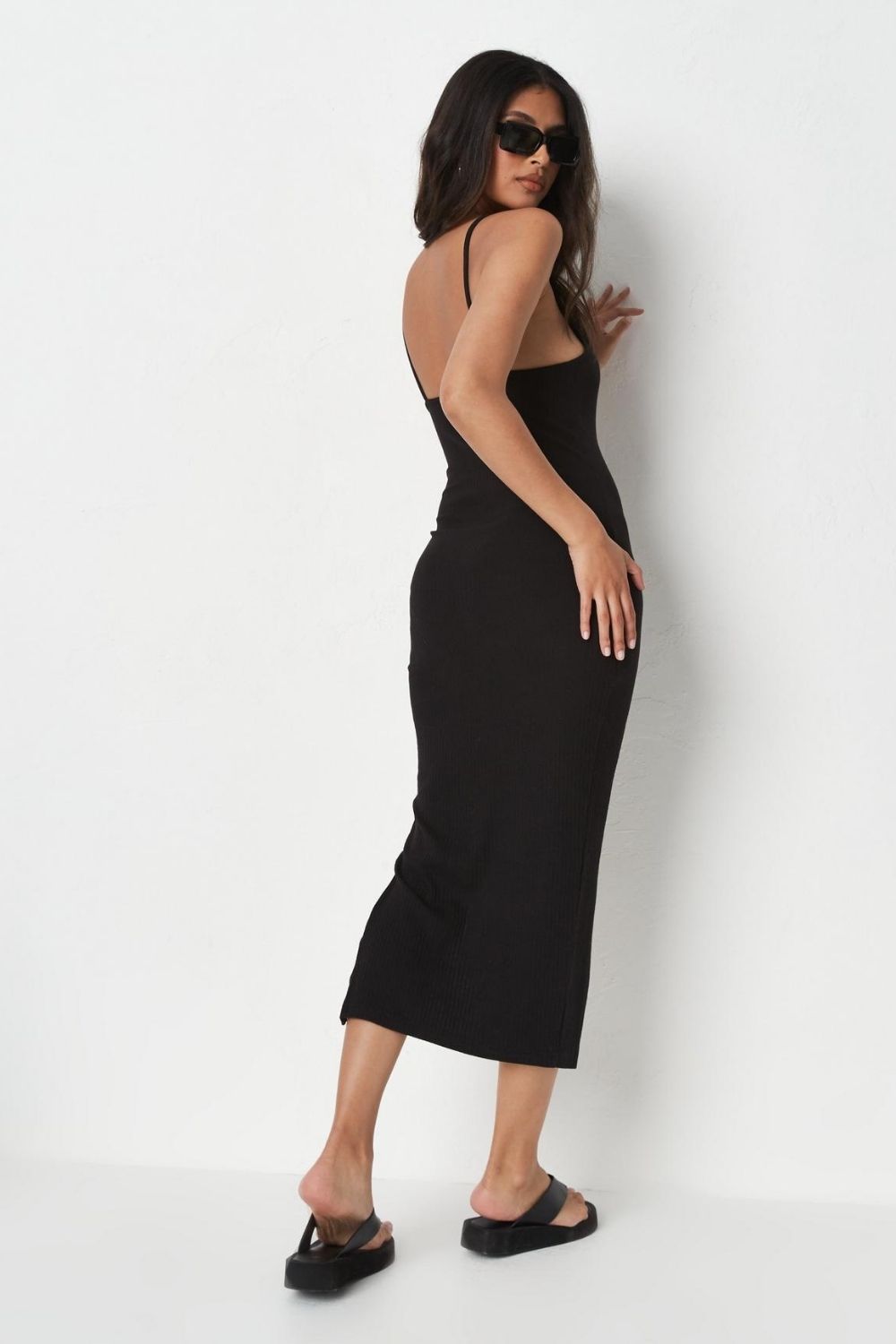 SKU:SideSlitKnotDetailBlackMidaxiDress-XS