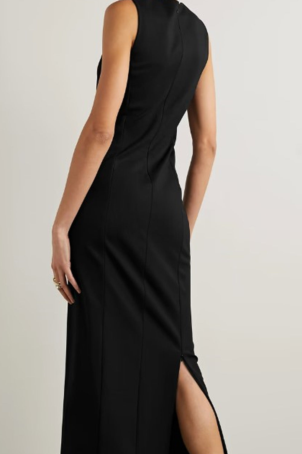 Type-Silhouette Black Dress, Color-Black, Neck type-Round neck, Sleeve Length-Sleeveless, Fit-Body Fit, Fabric-Poly Lycra
