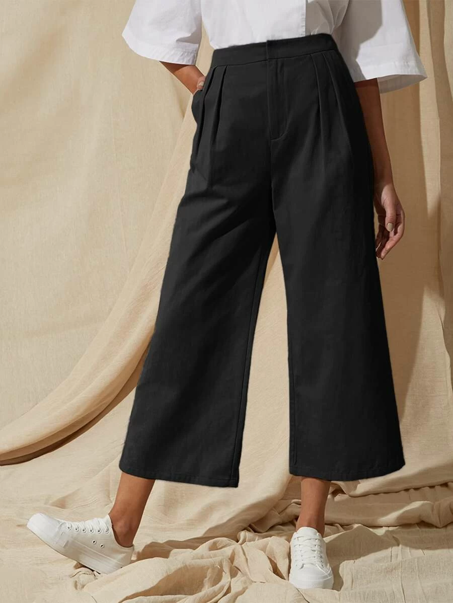 SKU:LNSWideLegCroppedPantsBlack-XS