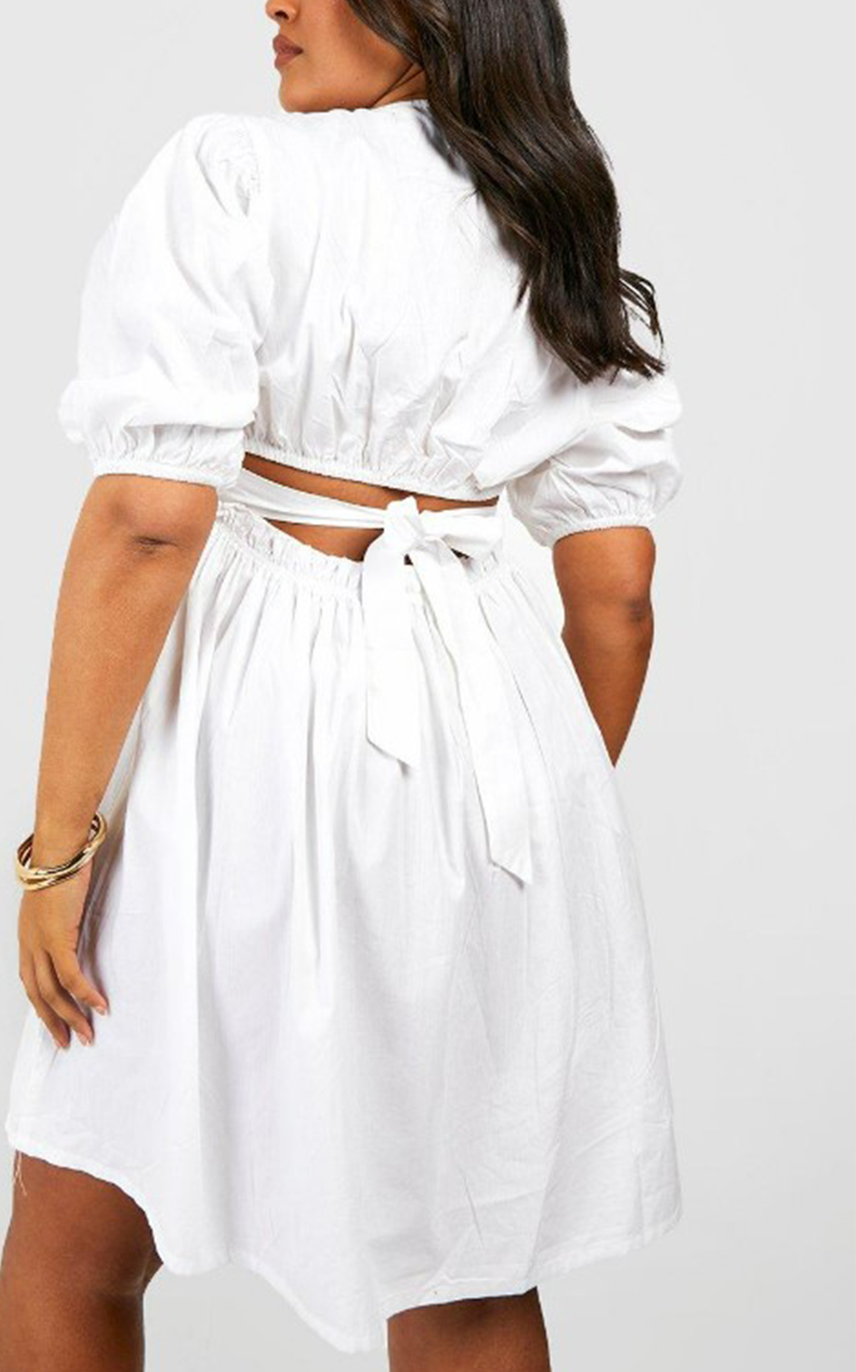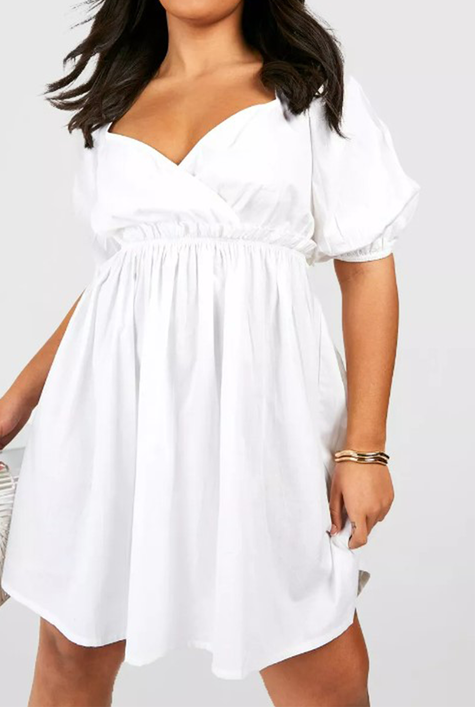 Type-Smart White Dress, Color-White, Neck type-Sweetheart neck, Sleeve Length-Half Sleeve, Fit-Regular, Fabric-Poplin