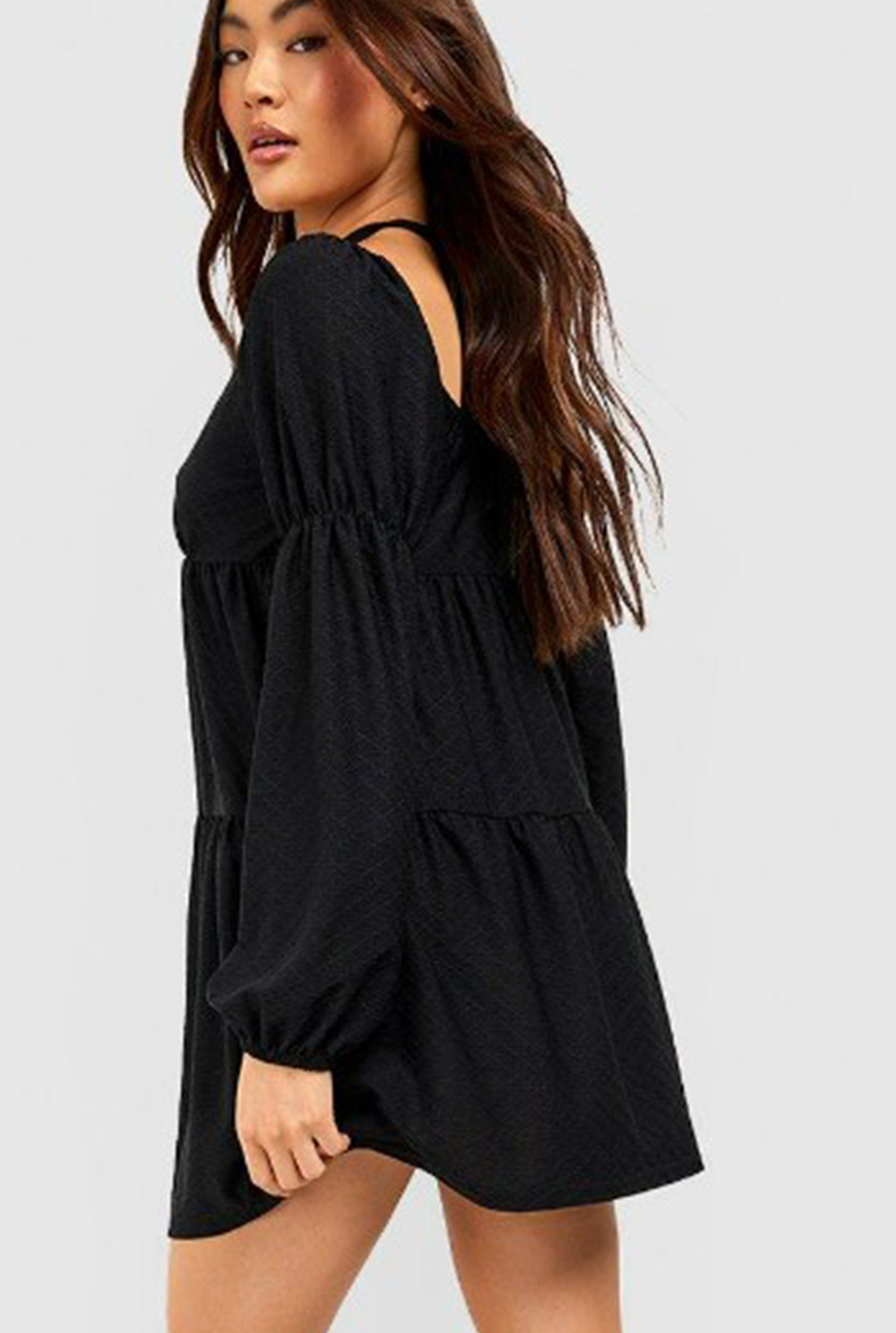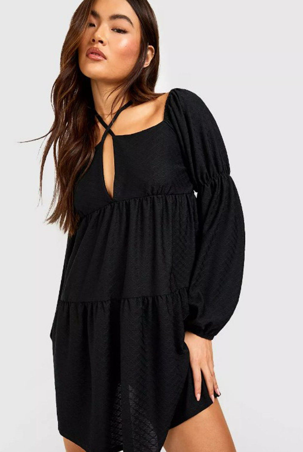 Type-Snappy Black Dress, Color-Black, Neck type-Crisscross halter neck, Sleeve Length-full length, Fit-Regular, Fabric-Rayon