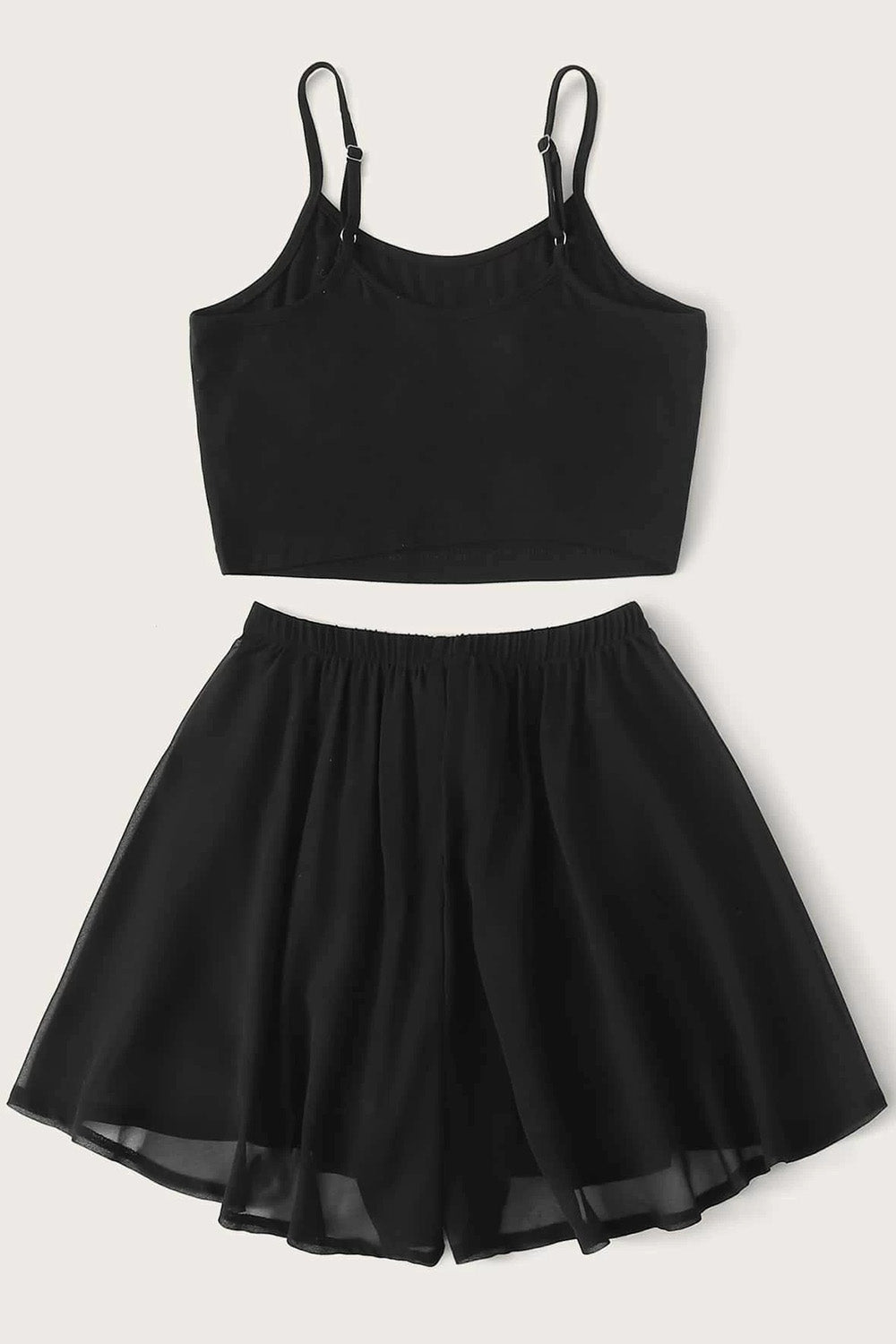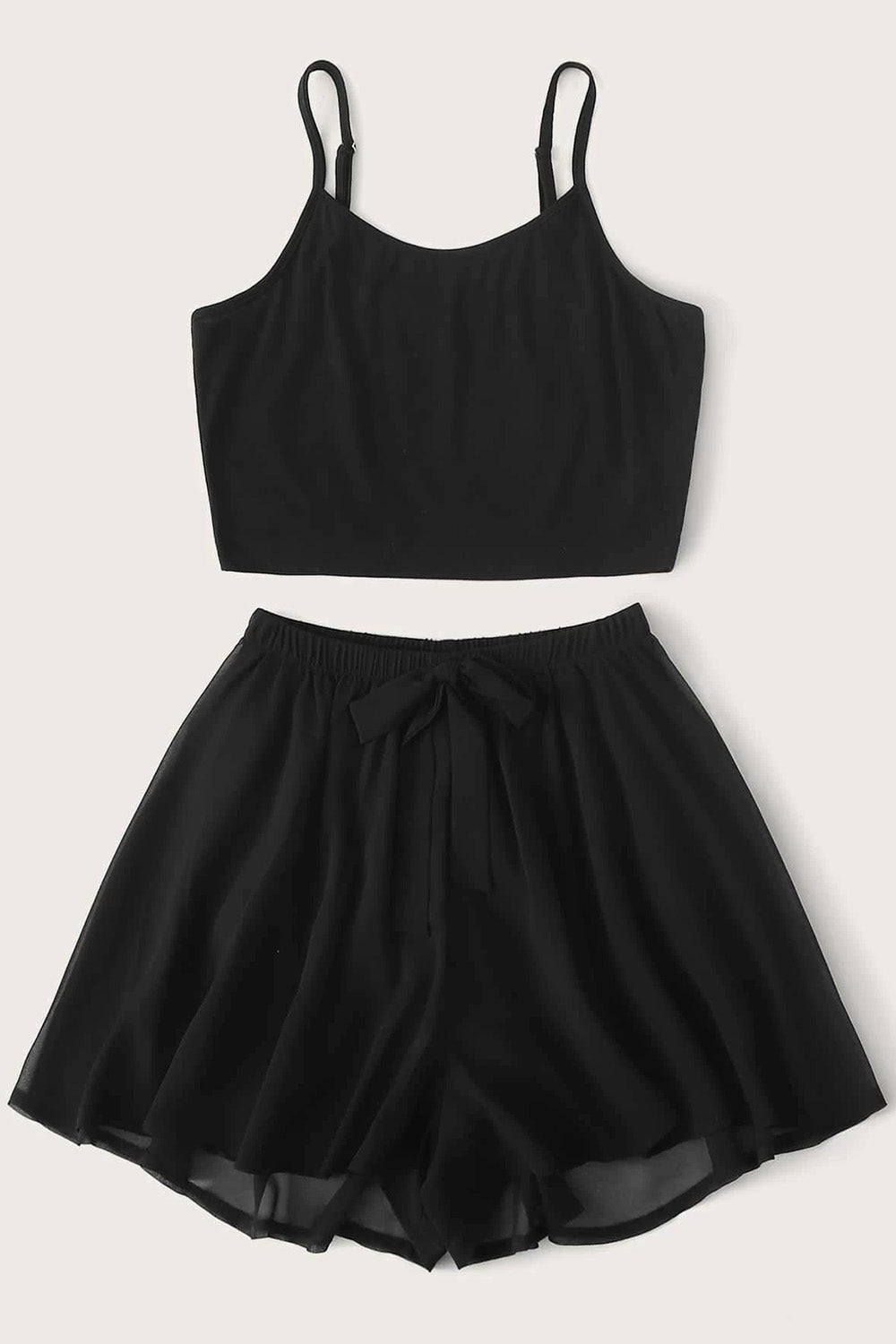DETAILS- Crop length, cami style, lightweight pant, bow detail