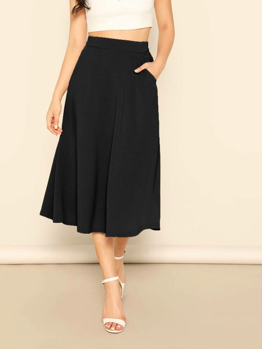 NAME- Solid Slant Pocket Swing Skirt