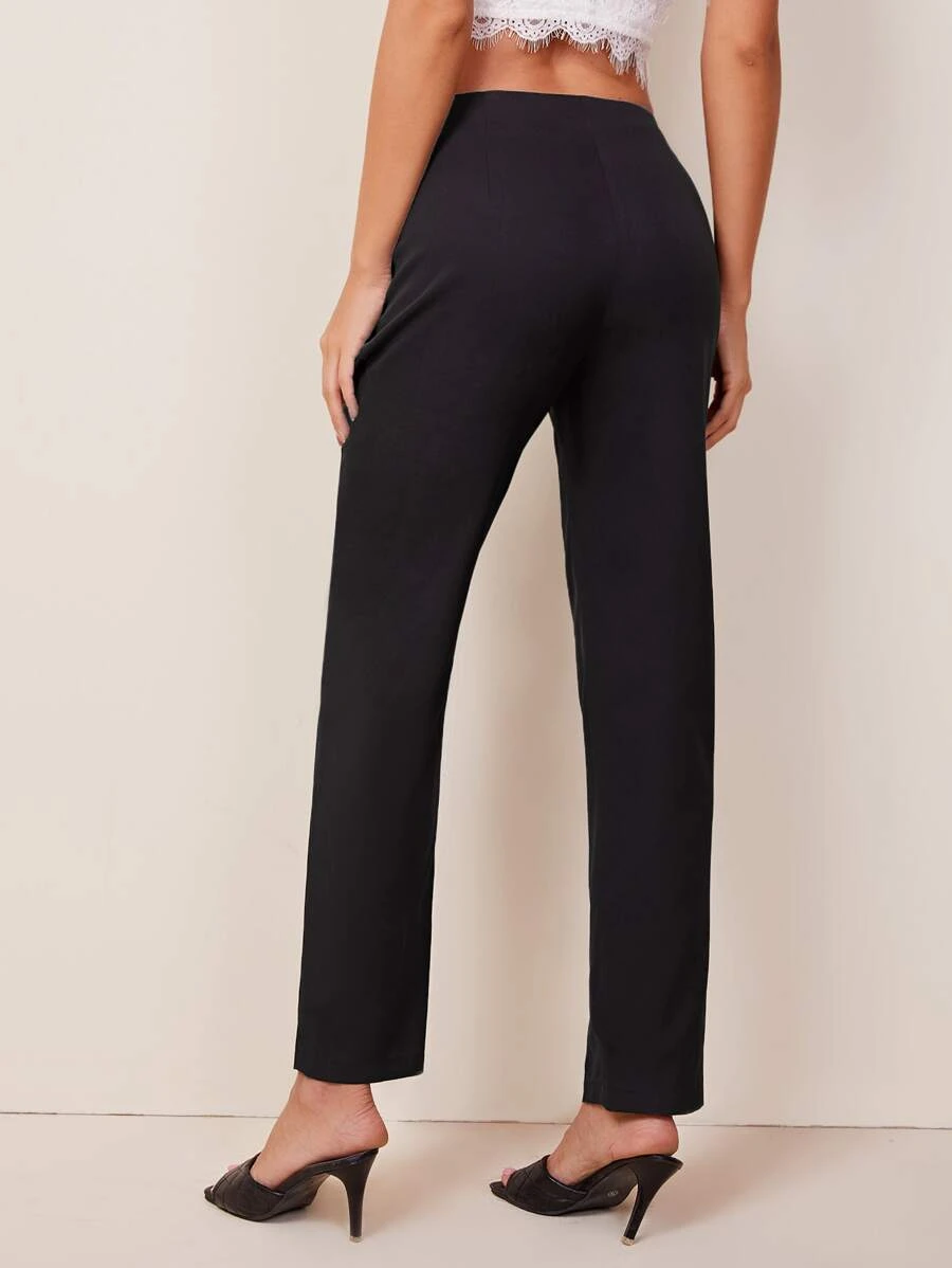 SKU:LNSSplitThighSolidPantsBlack-XS