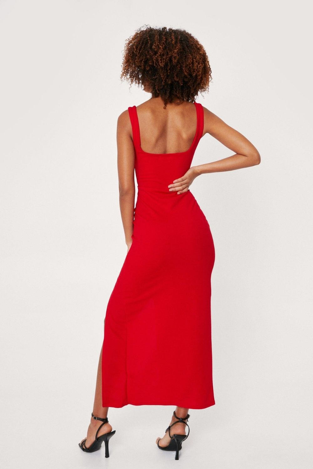 Square Neck Split Front Maxi Dress