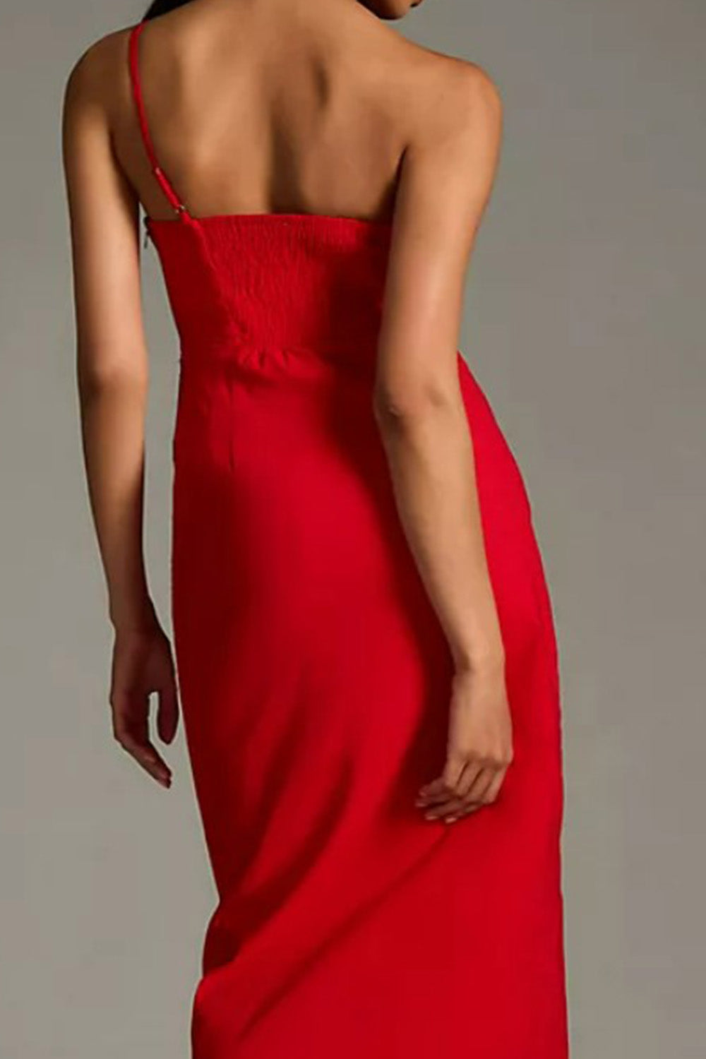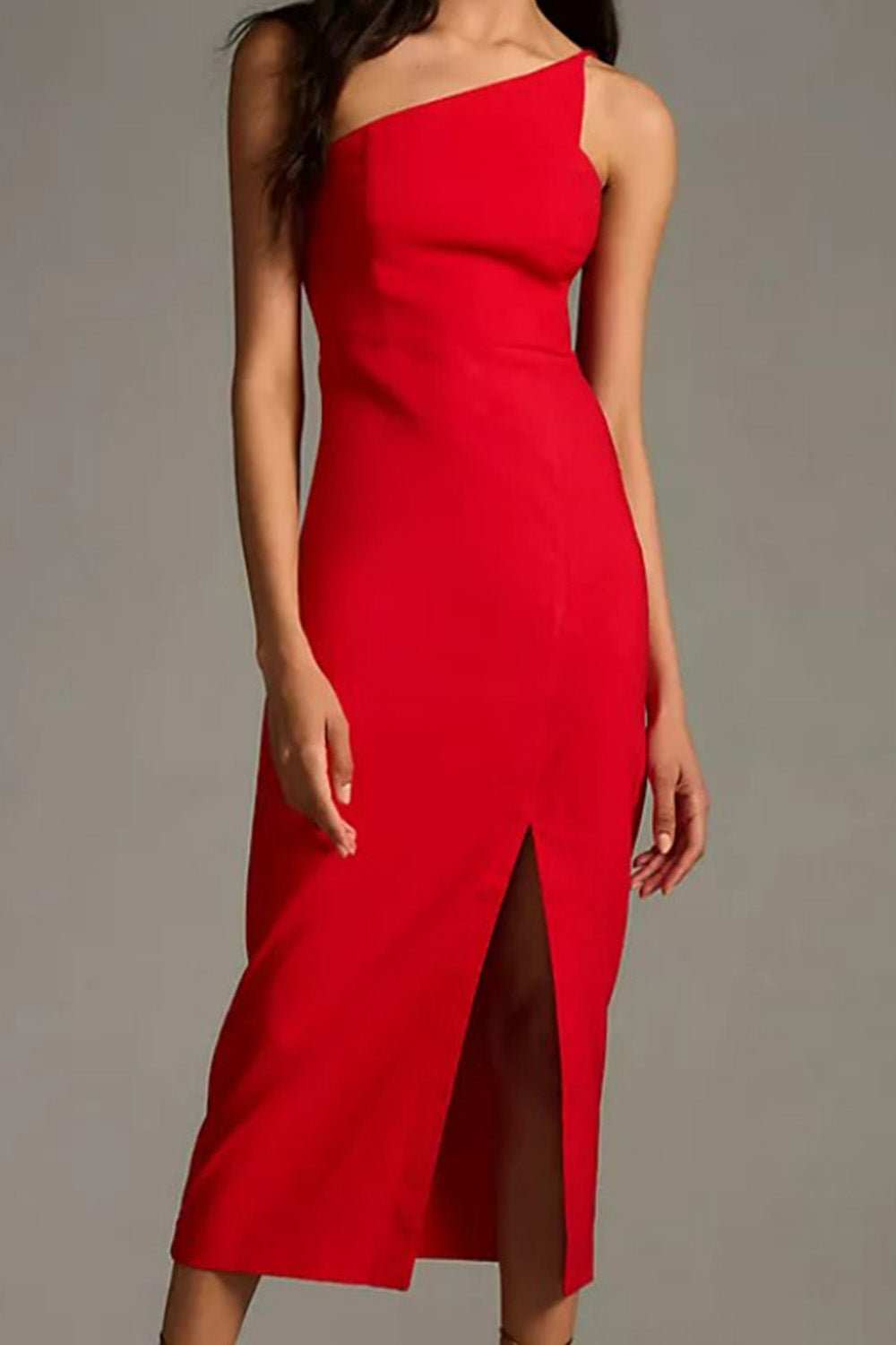 Type-Stunning Red Dress, Color-Red, Neck type-One shoulder, Sleeve Length-Sleeveless, Fit-Body Fit, Fabric-Poly Lycra