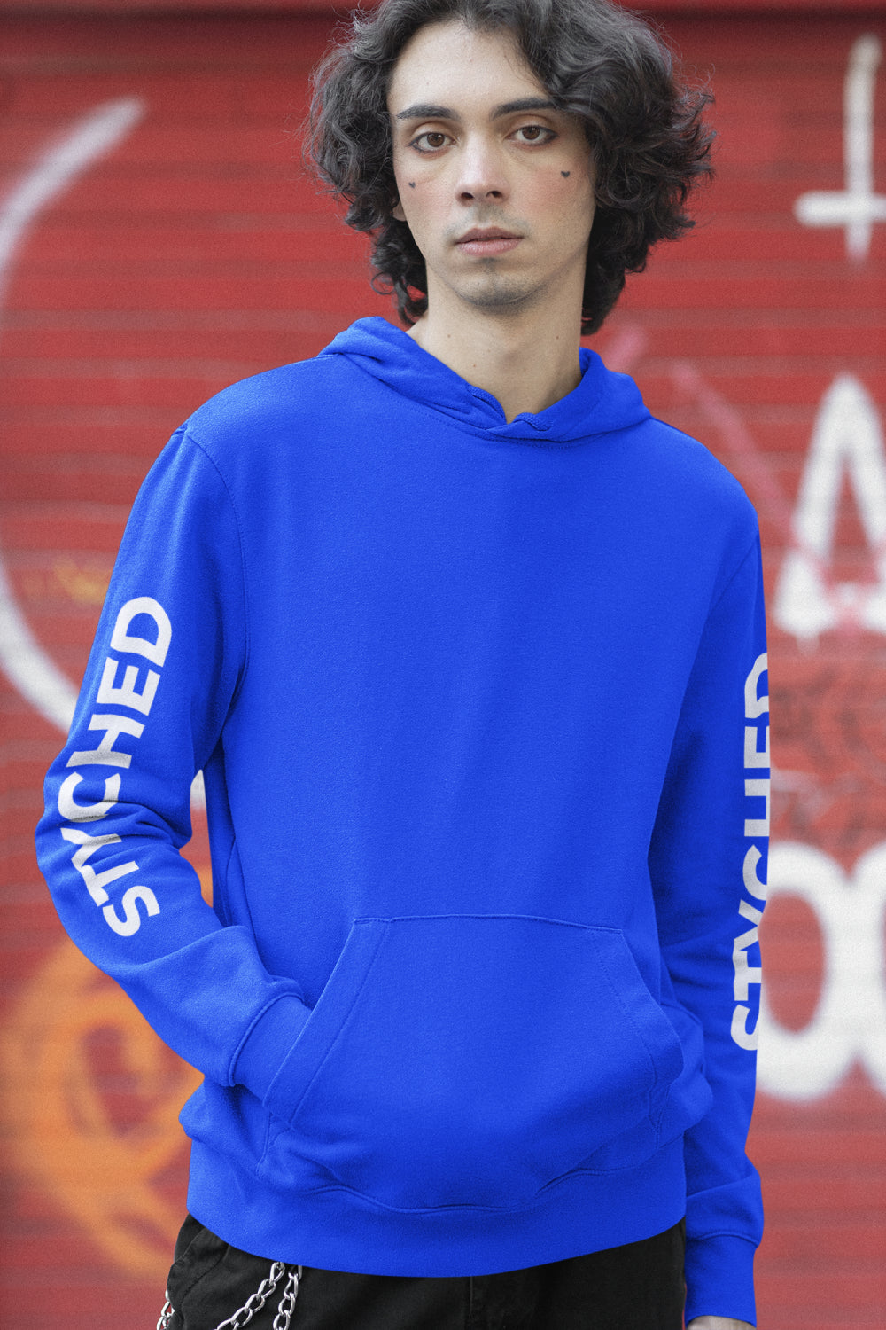 Styched Sleeve Print Premium Non Zipper Blue Hoodie