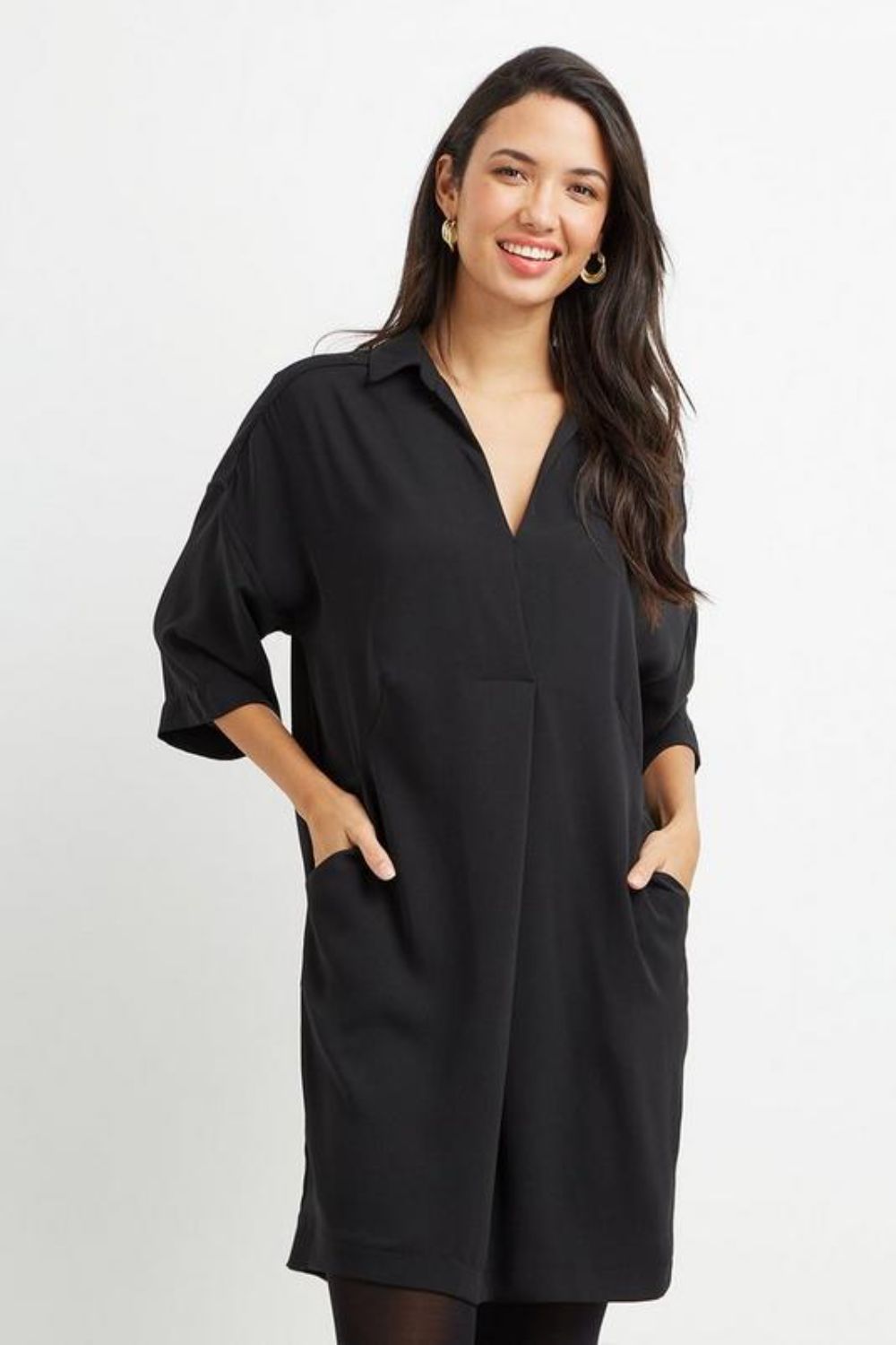 SKU:TallBlackPocketVNeckShiftDress-XS