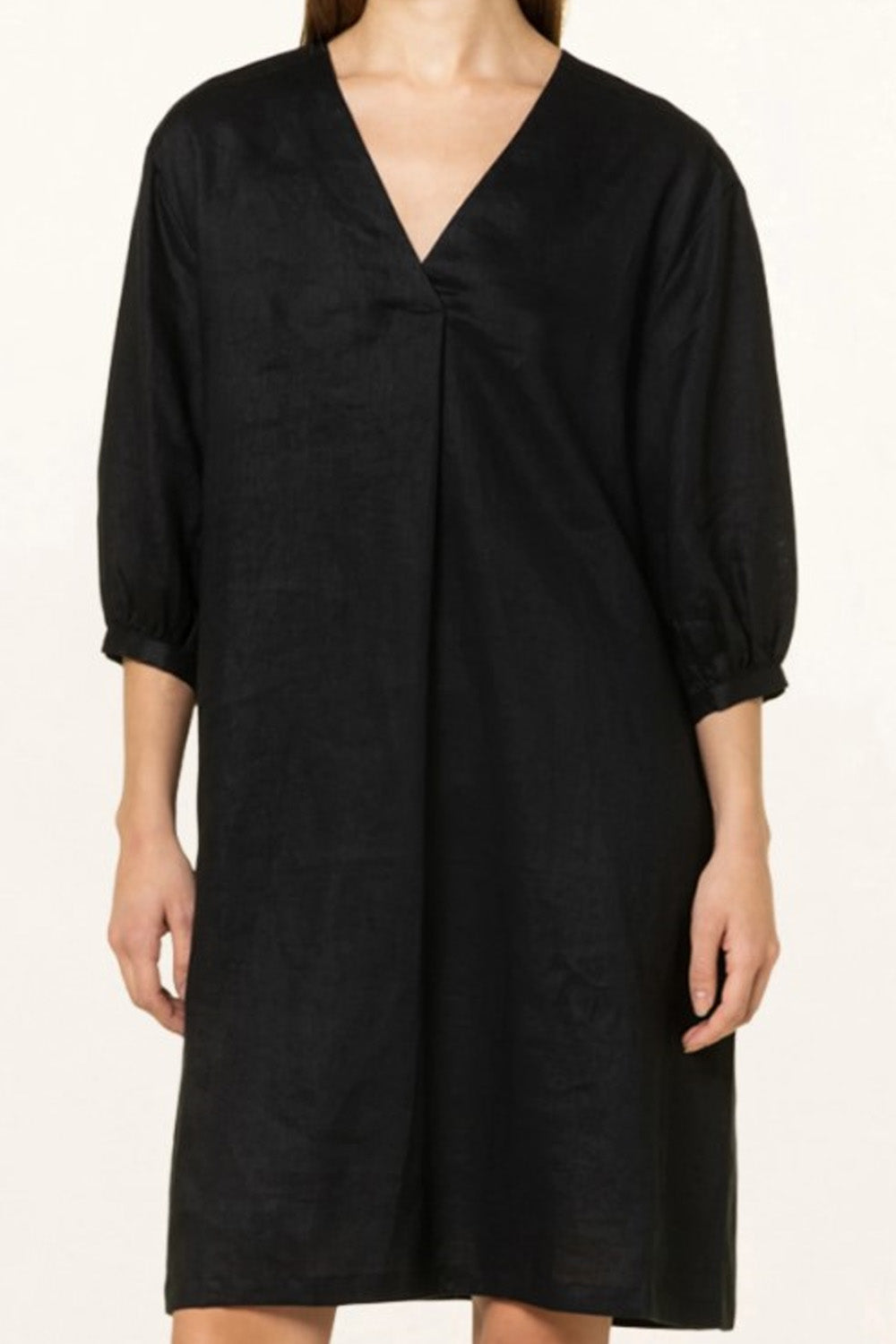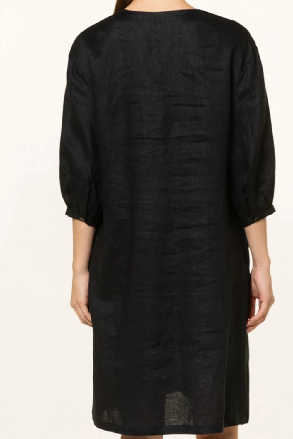 Type-Terra Black Dress, Color-Black, Neck type-V neck, Sleeve Length-3/4th Sleeve, Fit-Regular, Fabric-Cotton