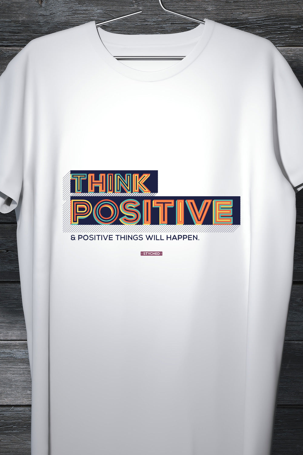 Think Positive and Positive things will happen - Contemporary Stylish White TShirt
