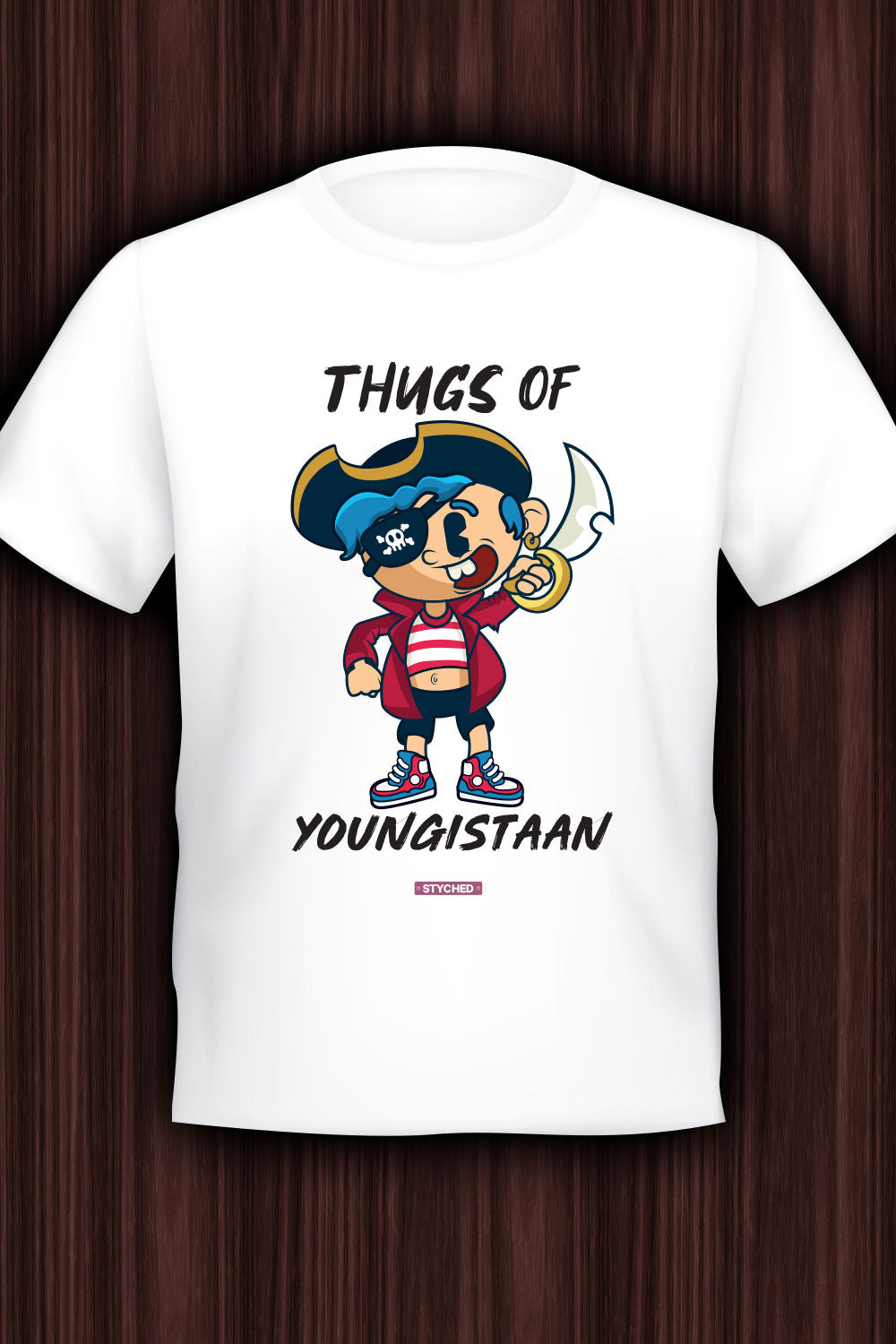 Our graphic T-Shirts are, by far, the best that you can get your hands on! You just don't buy this graphic printed tshirt but you got to own it because the cool pirate has the soul which comes alive when you wear this graphic tee and walk out and putting the statement aloud that you belong to Thugs of Youngistan