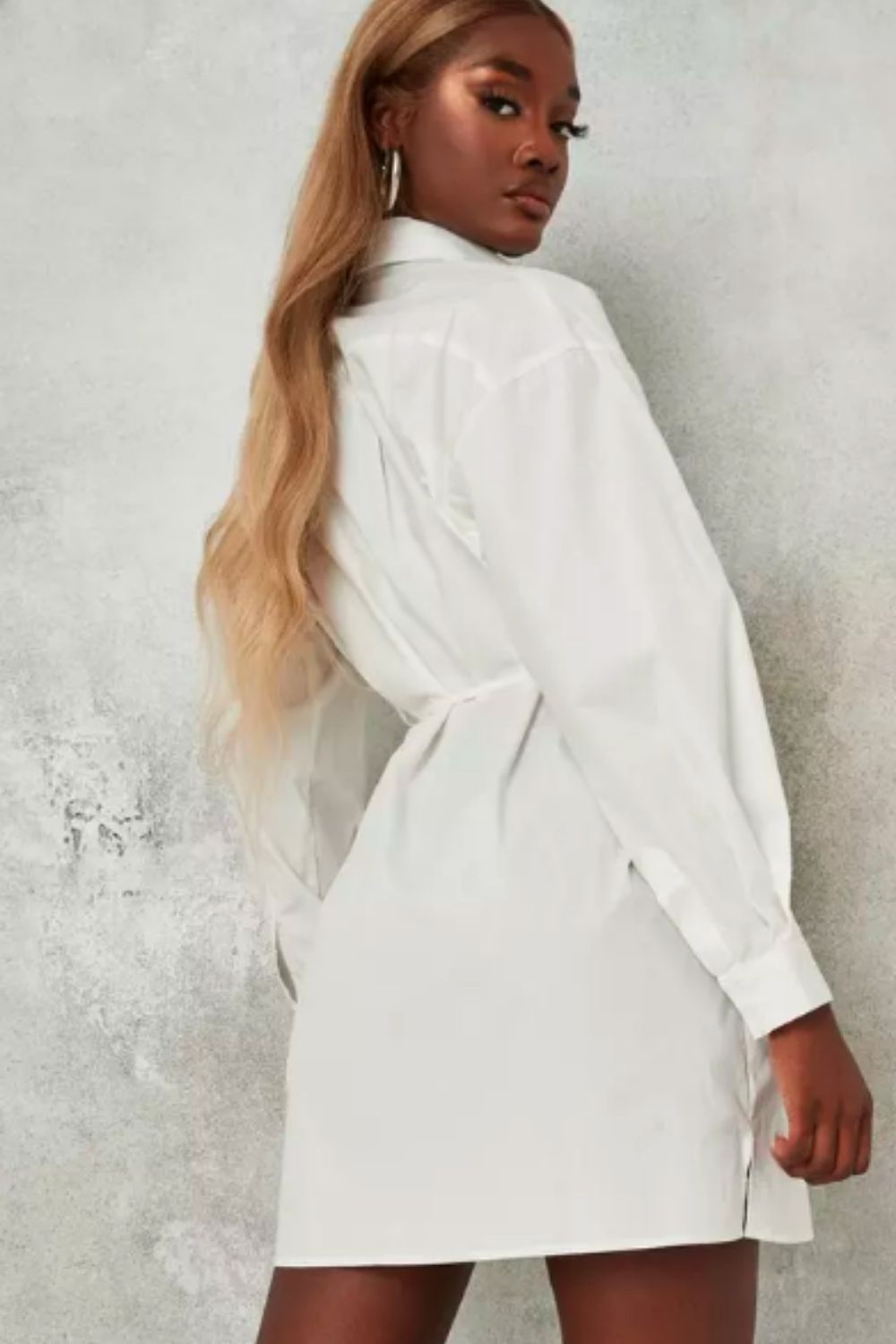 Office Chic: Take your Tie Waist White Shirt Dress from day to night by pairing it with classic pumps and a structured tote bag. Add a blazer for a polished office-appropriate ensemble.