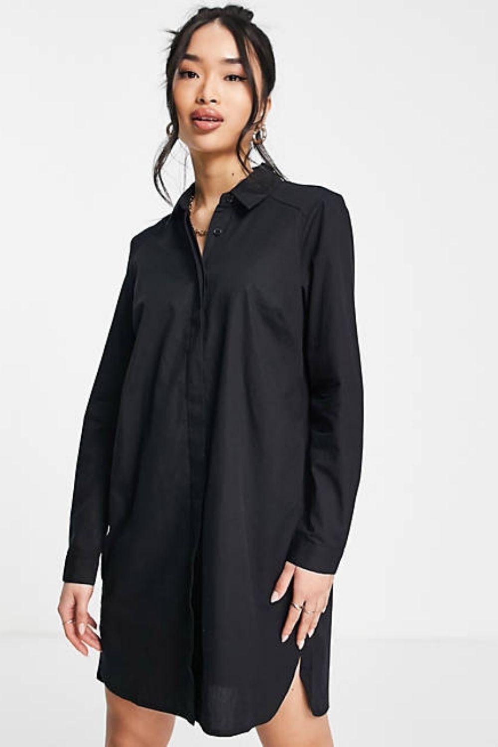 Effortless Elegance: Embrace a sophisticated look by pairing the Tim Tim Black Shirt Dress with classic black heels and a sleek clutch. Add a statement belt to cinch the waist for a more defined silhouette.