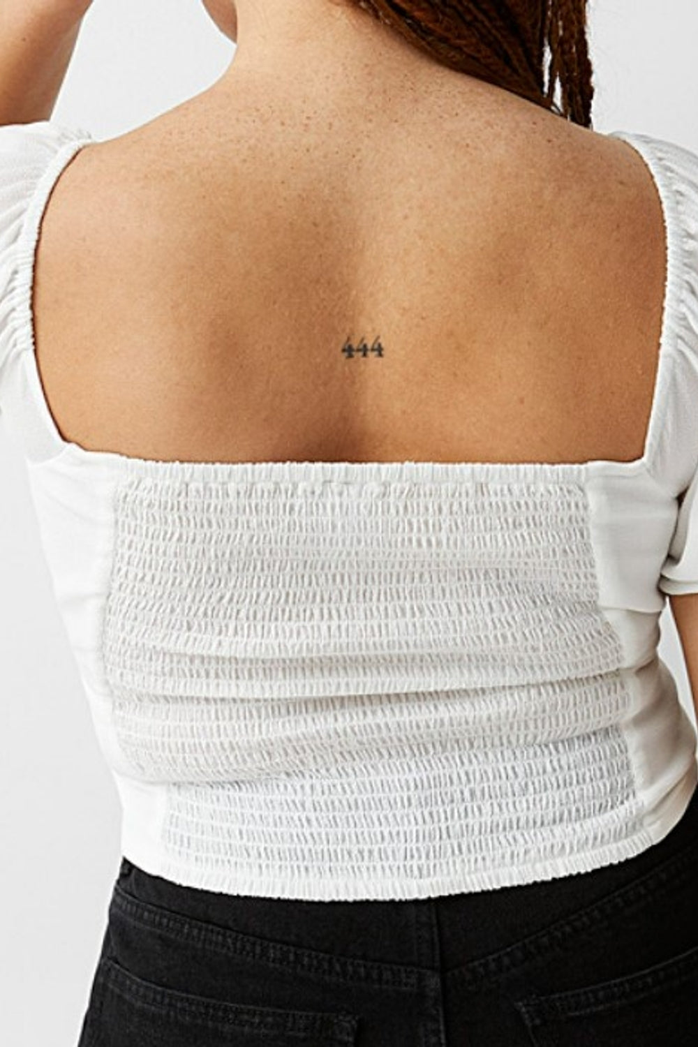 Type-Tranquil White Top, Color-White, Neck type-Square neck, Sleeve Length-Half Sleeve, Fit-Body Fit, Fabric-Rayon