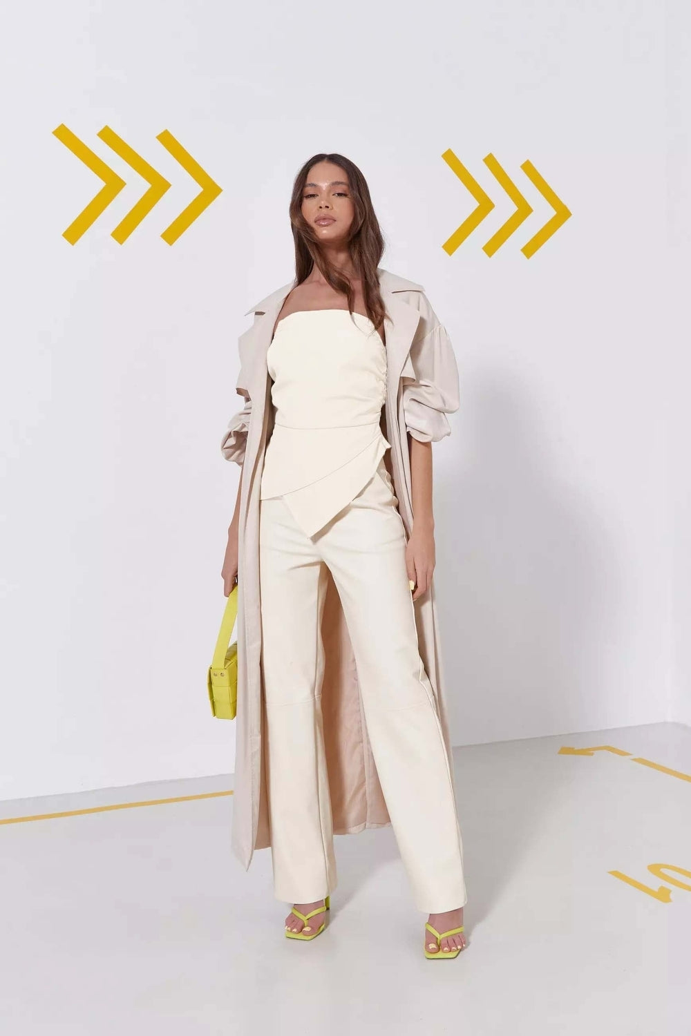 Monochrome Magic: Embrace a sophisticated monochrome look by styling this white asymmetric top with white tailored trousers or a midi skirt. Add a pop of color with statement accessories like a bold handbag or vibrant heels.