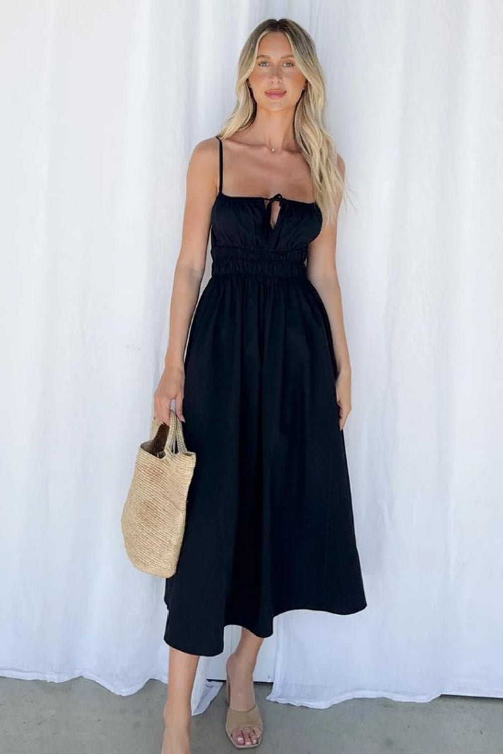 Introducing the Uiwang Black Dress – a timeless and elegant ensemble that effortlessly combines sophistication with comfort. This sleeveless black dress is designed for the modern woman who appreciates versatile fashion that seamlessly transitions from day to night. Here's a detailed product description and some styling tips to make the most out of this wardrobe essential.