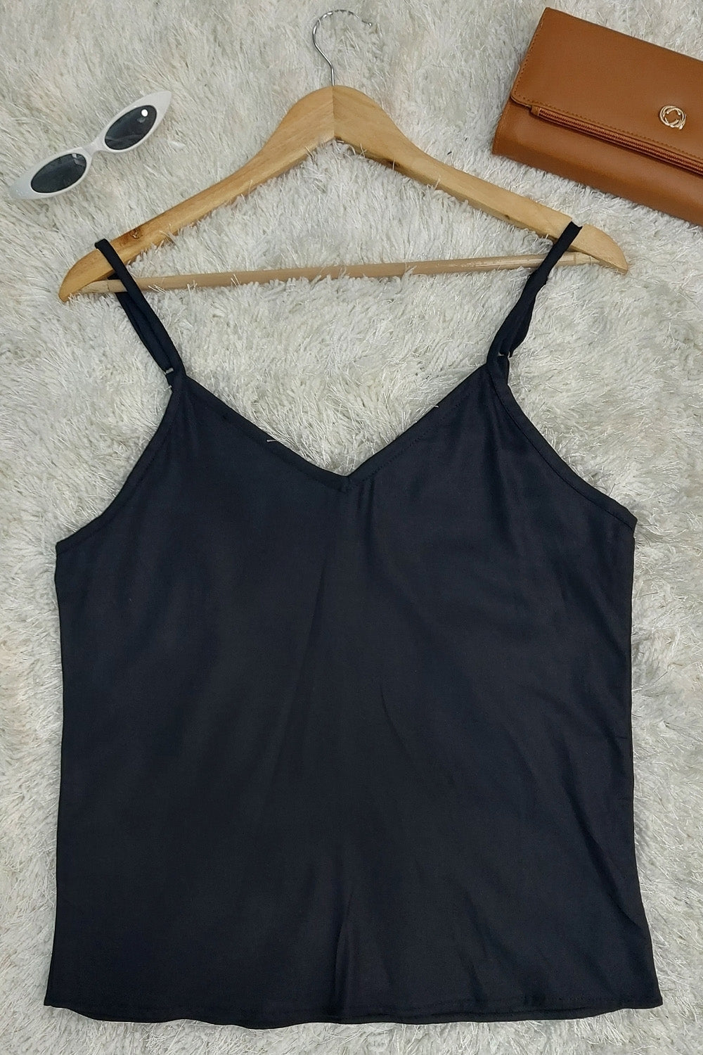 Color: Our V-Neck Cami Top is available in timeless black, a versatile and classic hue that effortlessly complements any wardrobe. Black is known for its ability to transition seamlessly from day to night, making this cami top a staple piece for various occasions.