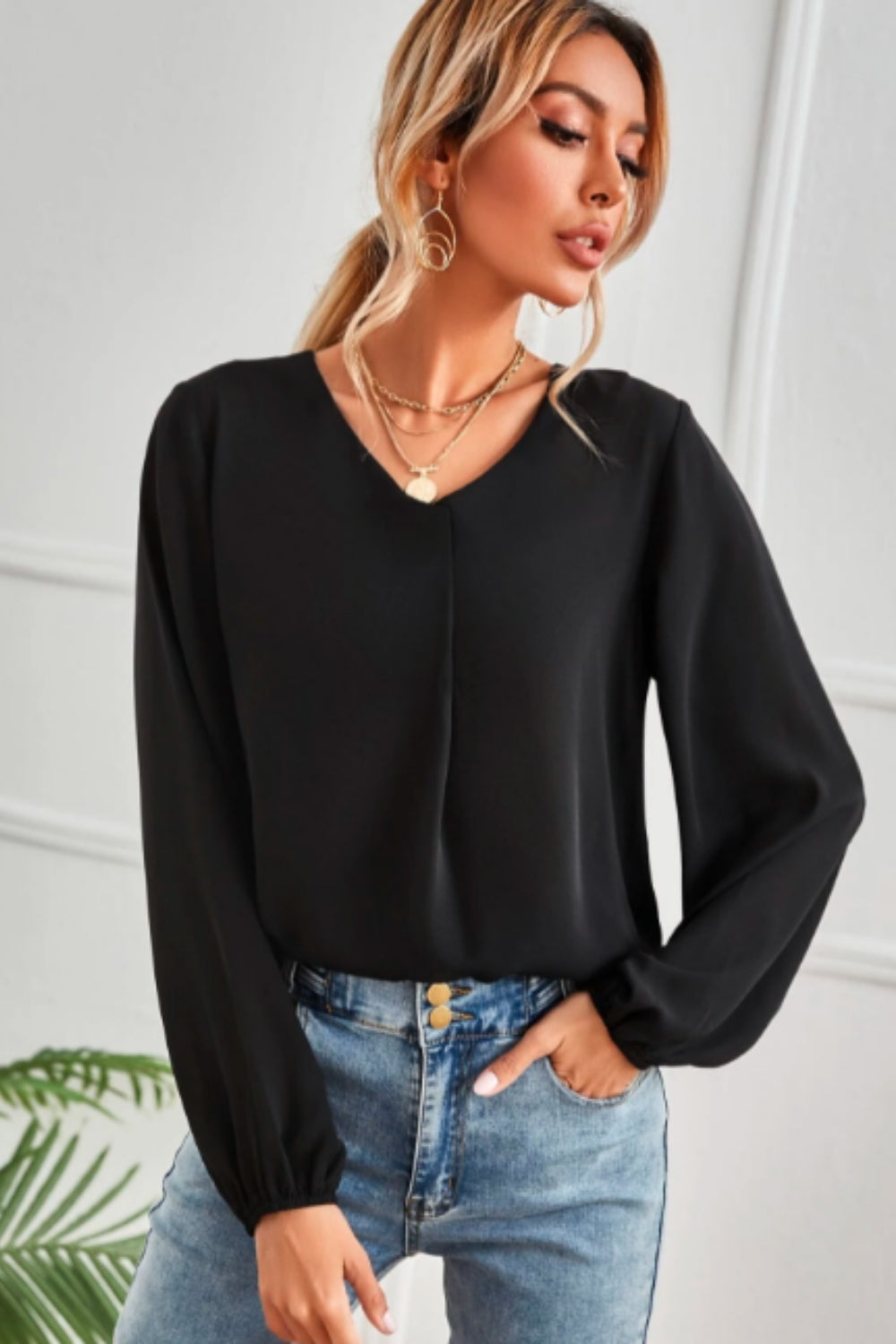 SKU:VNeckFullSleeveBlackSolidBlouse-XS